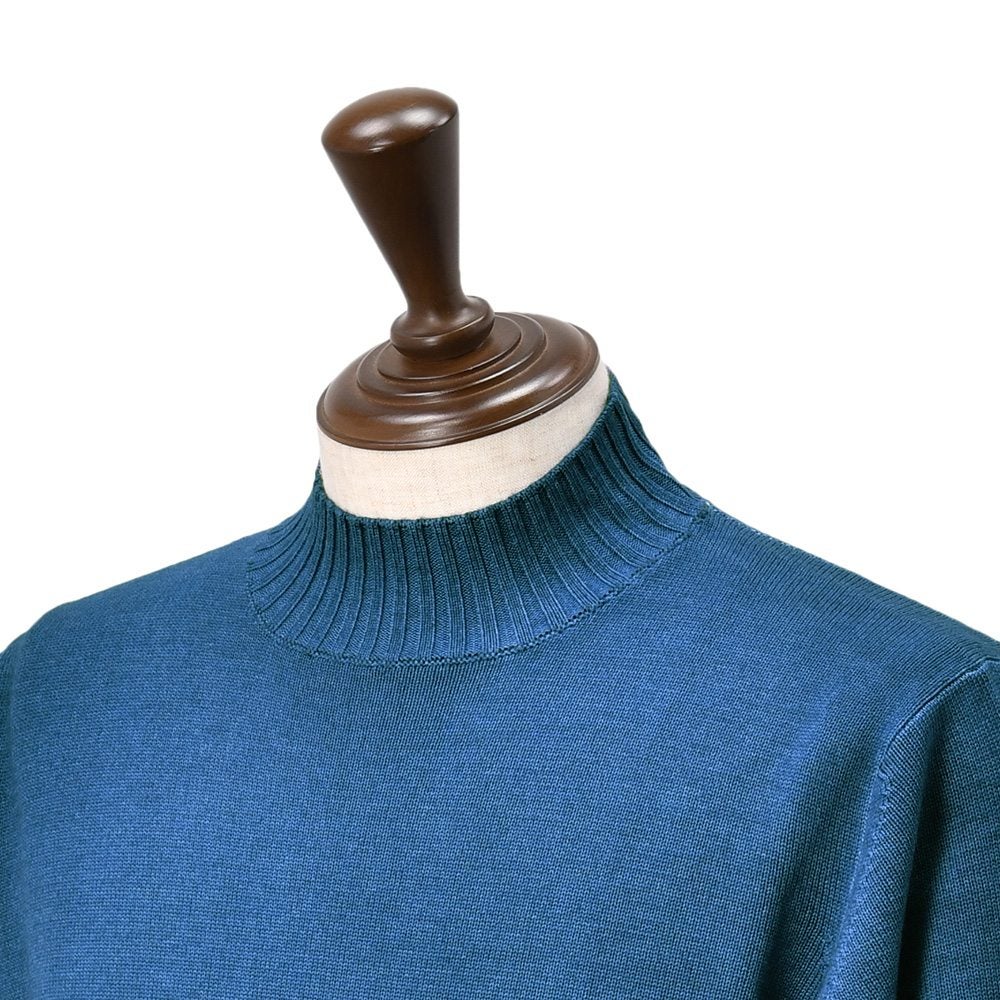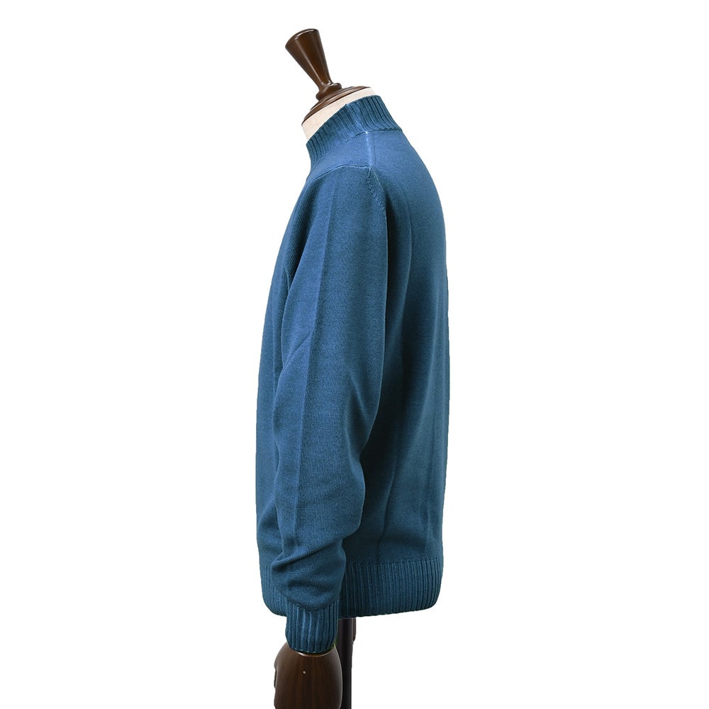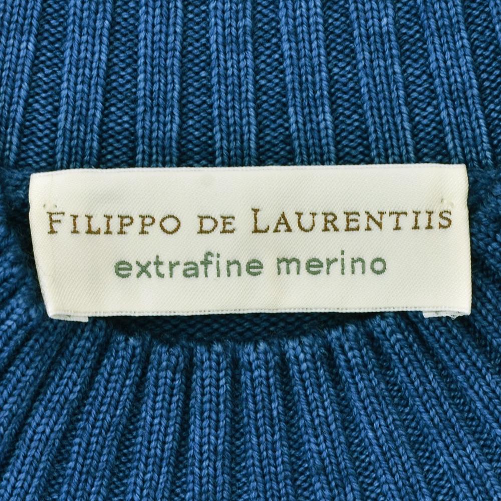 フィリッポ デ ローレンティス FILIPPO DE LAURENTIIS モックネックニット メンズ ミドルゲージ 製品染め メリノウール ブルー 青 長袖 リブ仕様 スリムフィット 国内正規品 でらでら 公式ブランド