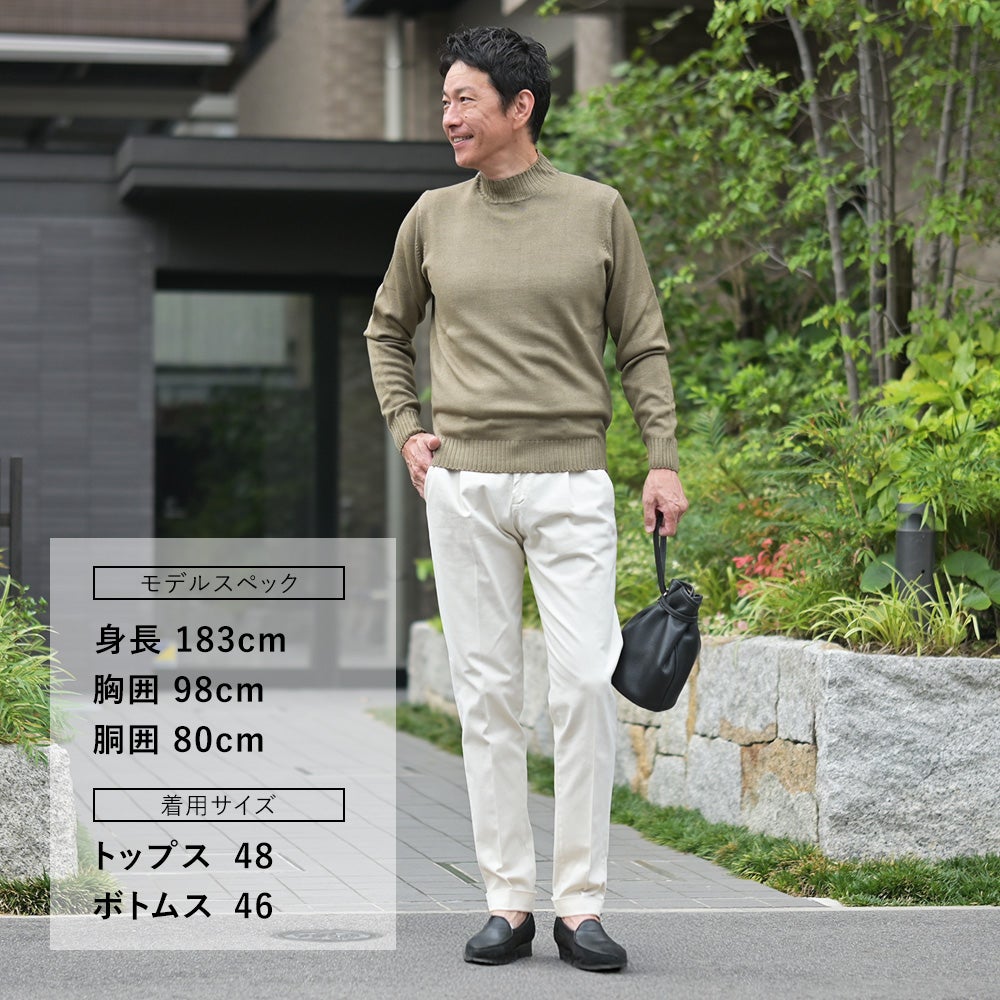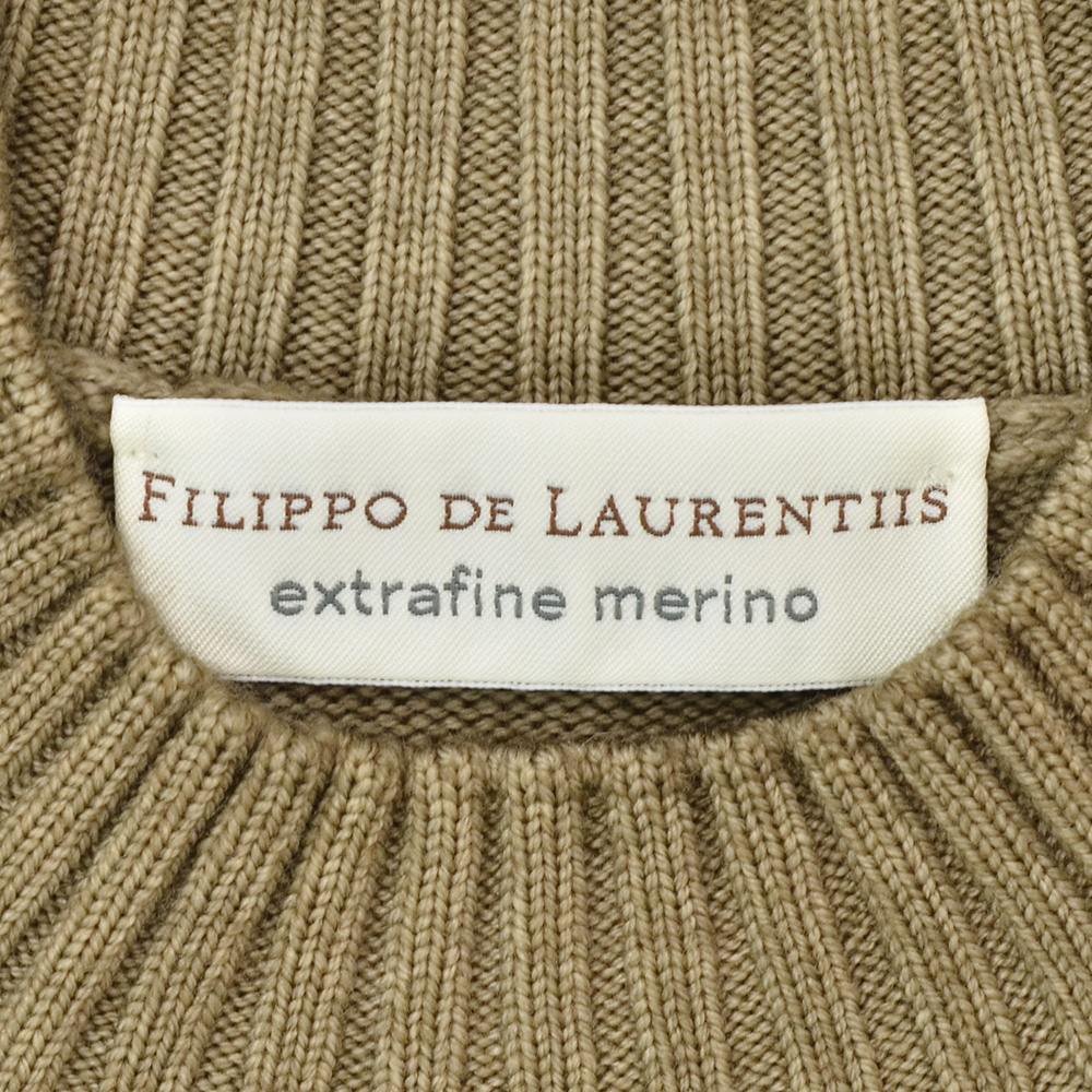 フィリッポ デ ローレンティス FILIPPO DE LAURENTIIS モックネックニット メンズ ミドルゲージ 製品染め メリノウール ブラウングレー 長袖 リブ仕様 スリムフィット 国内正規品 でらでら 公式ブランド