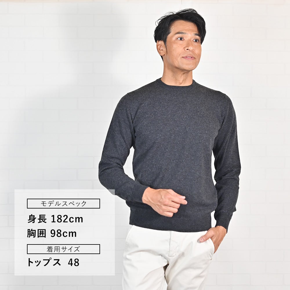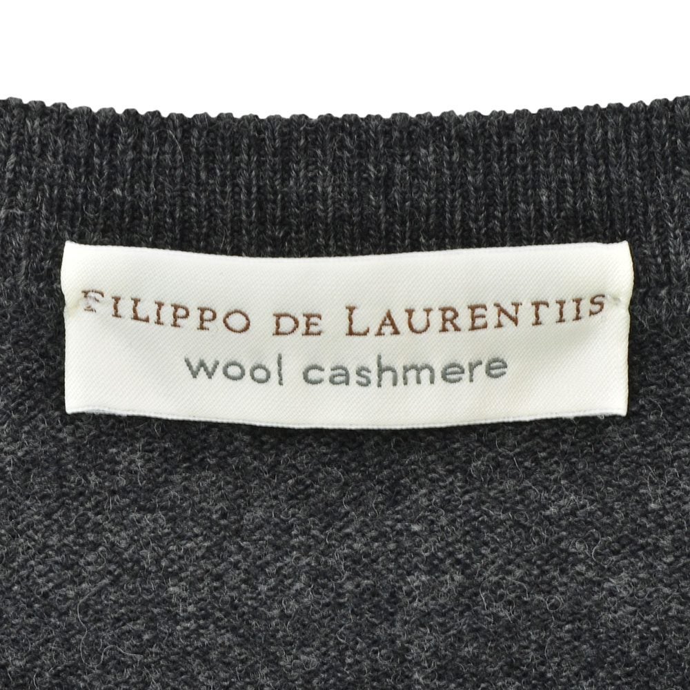 フィリッポ デ ローレンティス FILIPPO DE LAURENTIIS クルーニット メンズ ミドルゲージ ウールカシミア チャコールグレーメランジ 長袖 スリムフィット 12ゲージ 国内正規品 でらでら 公式ブランド