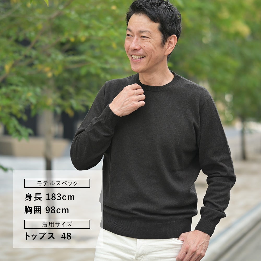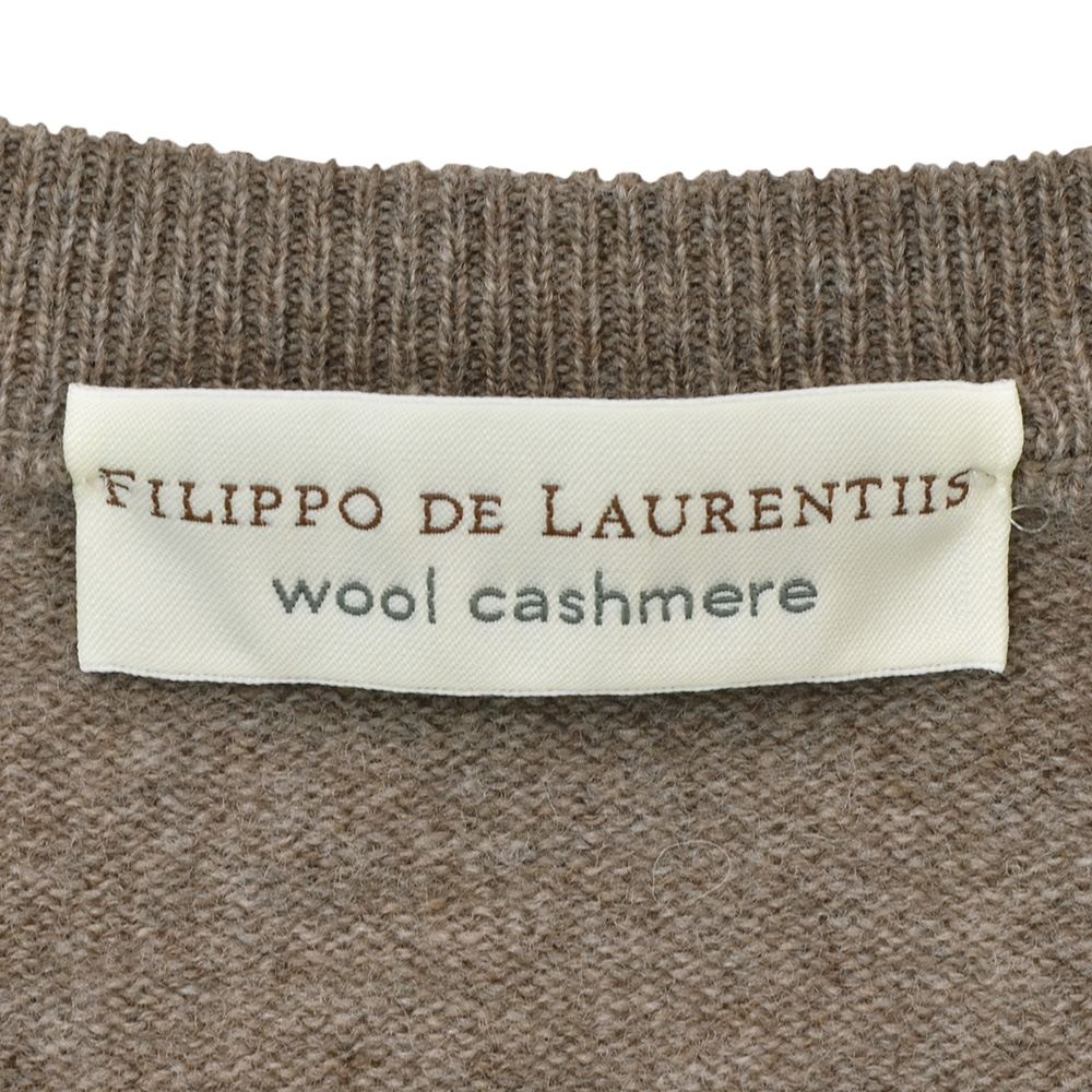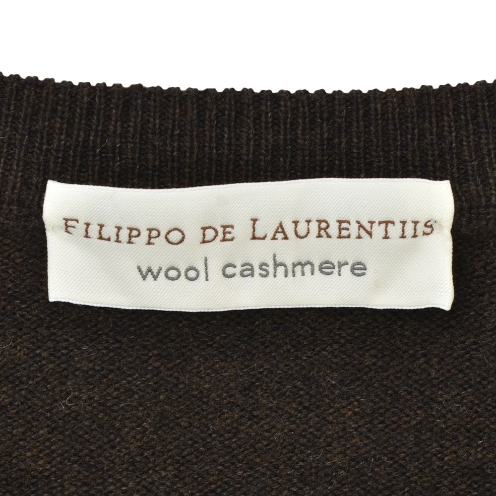 フィリッポ デ ローレンティス FILIPPO DE LAURENTIIS クルーニット メンズ ミドルゲージ ウールカシミア ダークブラウン 長袖 スリムフィット 12ゲージ 国内正規品 でらでら 公式ブランド