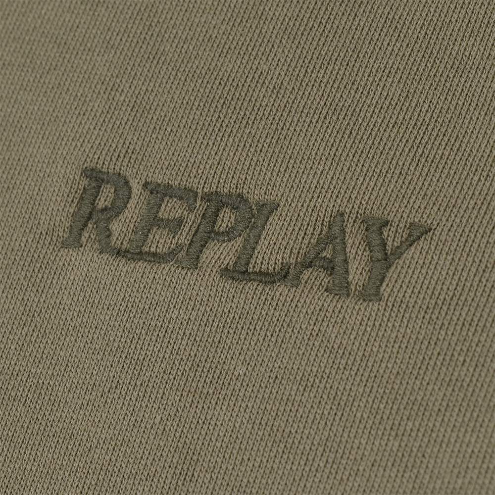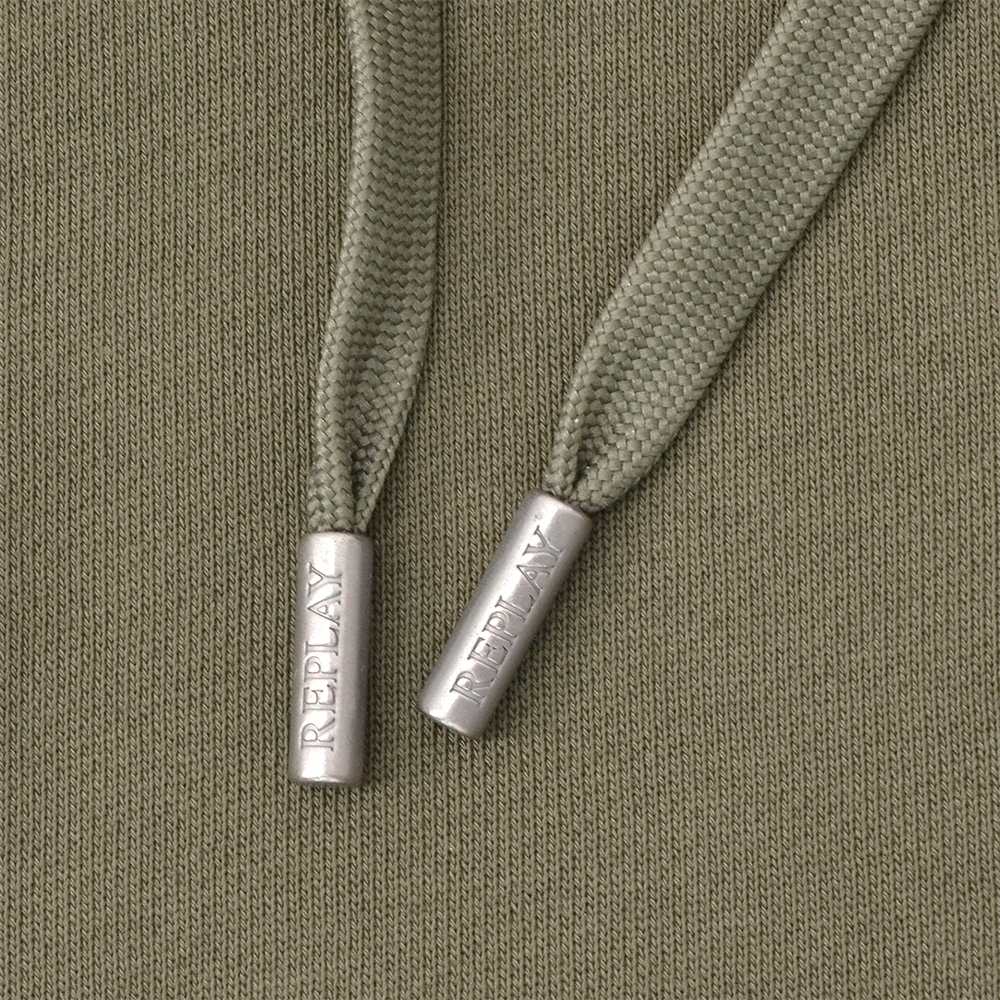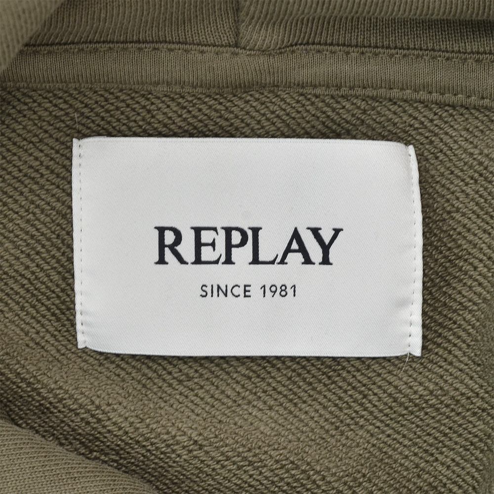 リプレイ REPLAY プルオーバーパーカー メンズ フーディースウェットシャツ コットンテリー素材 オリーブ ブランドロゴ刺繍 裏パイル ドローコード付き 国内正規品 でらでら 公式ブランド