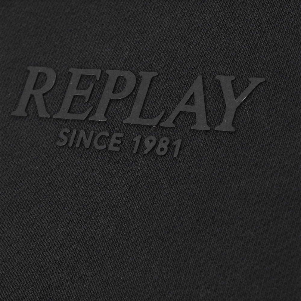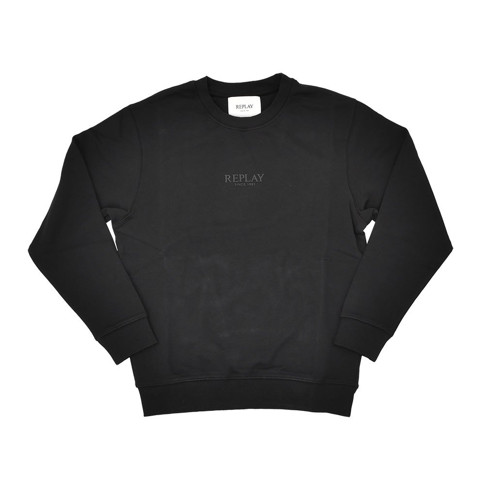 リプレイ REPLAY 長袖トレーナー メンズ スウェットシャツ フレンチテリー ブラック 黒 クルーネック レタリングロゴ 裏パイル 背面ロゴラベル 国内正規品 でらでら 公式ブランド