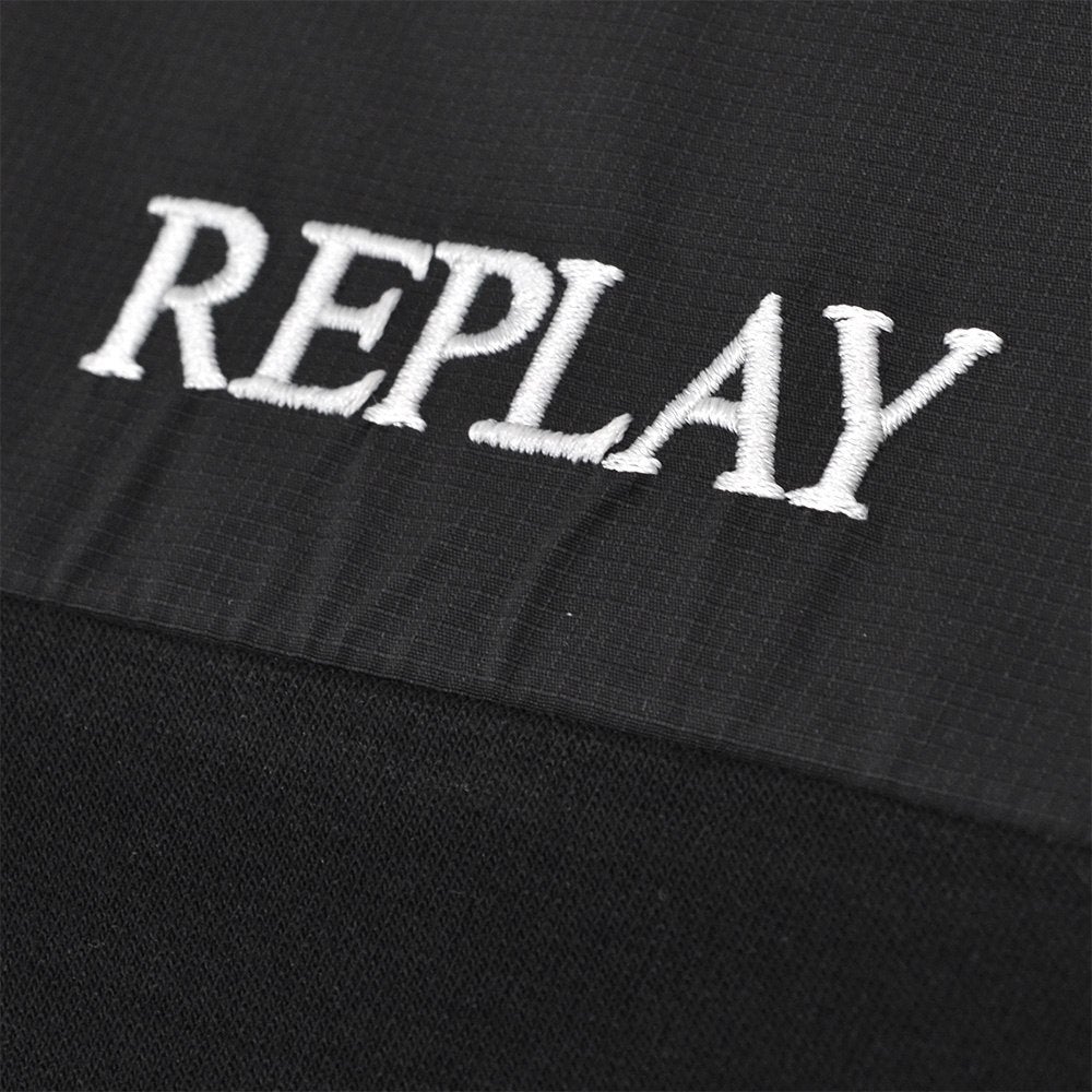 リプレイ REPLAY ハーフジップパーカー メンズ プルオーバー 3者混生地 ブラック 黒 スタンドネック仕様 ブランドロゴ刺繍 異素材切り替えデザイン サイドポケット 国内正規品 でらでら 公式ブランド