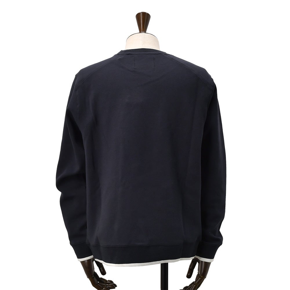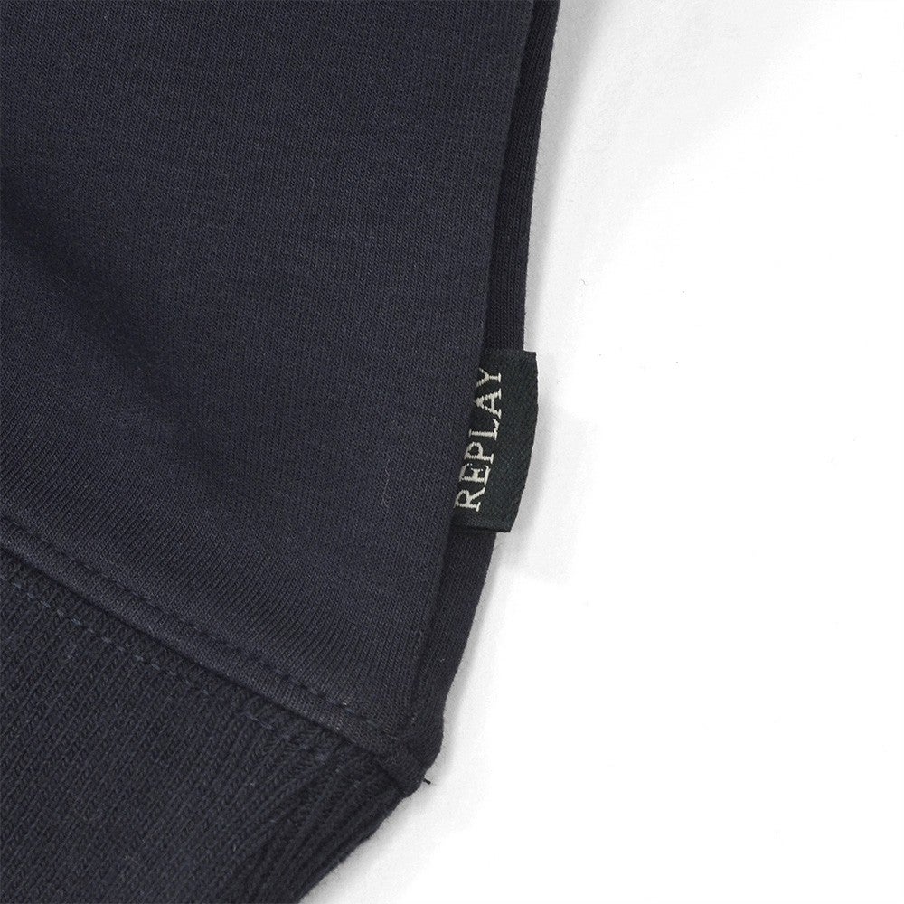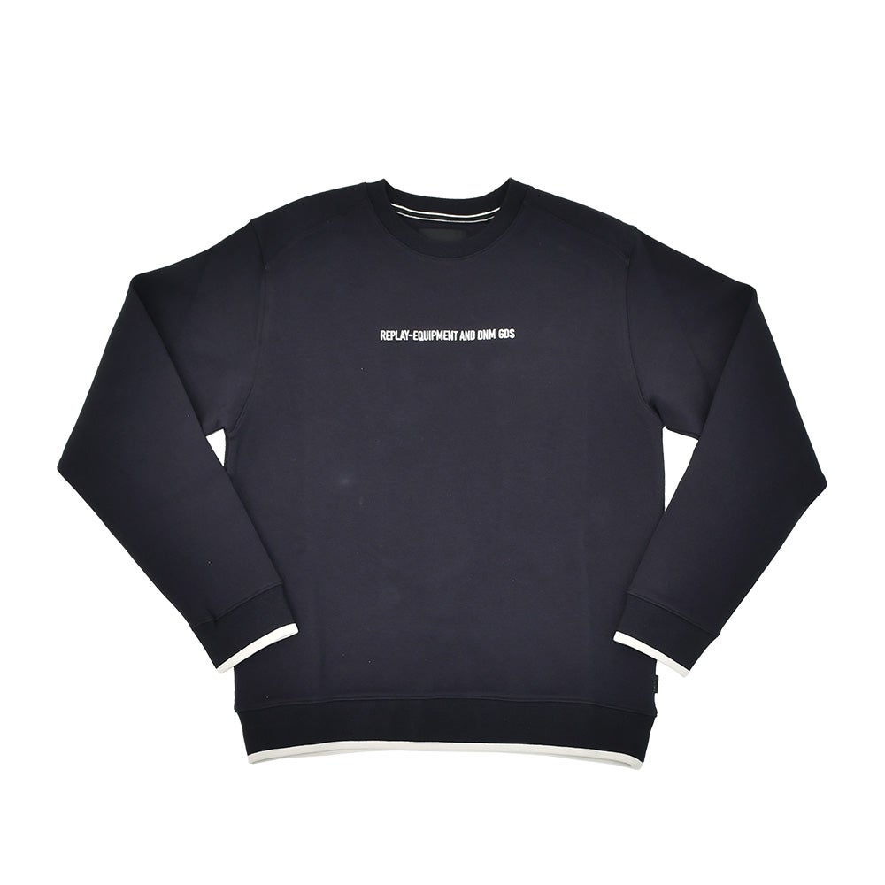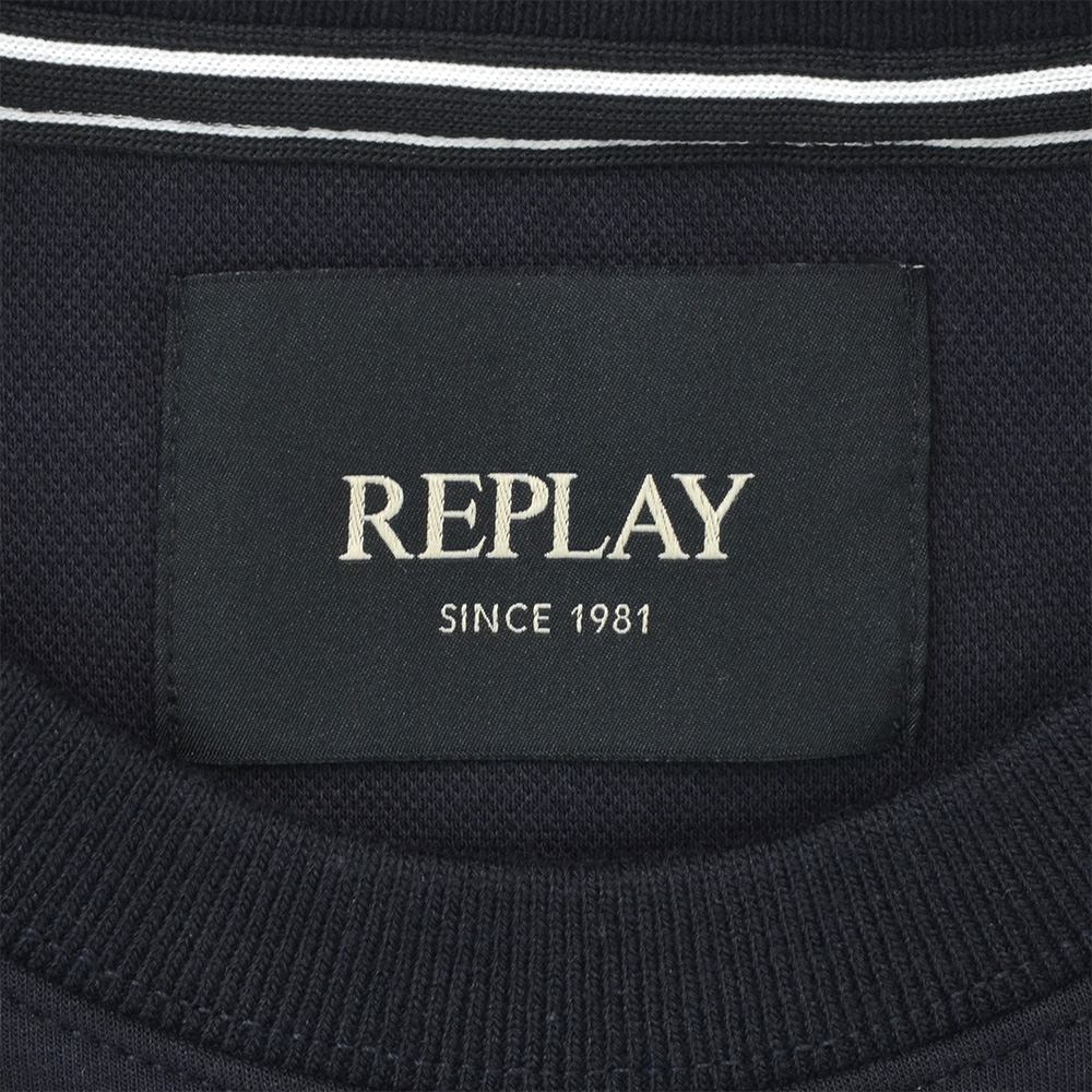 リプレイ REPLAY 長袖トレーナー メンズ スウェットシャツ コットンポリ 3者混生地 ネイビー 紺 クルーネック レタリングロゴ刺繍 ストレッチ リブ配色デザイン 国内正規品 でらでら 公式ブランド