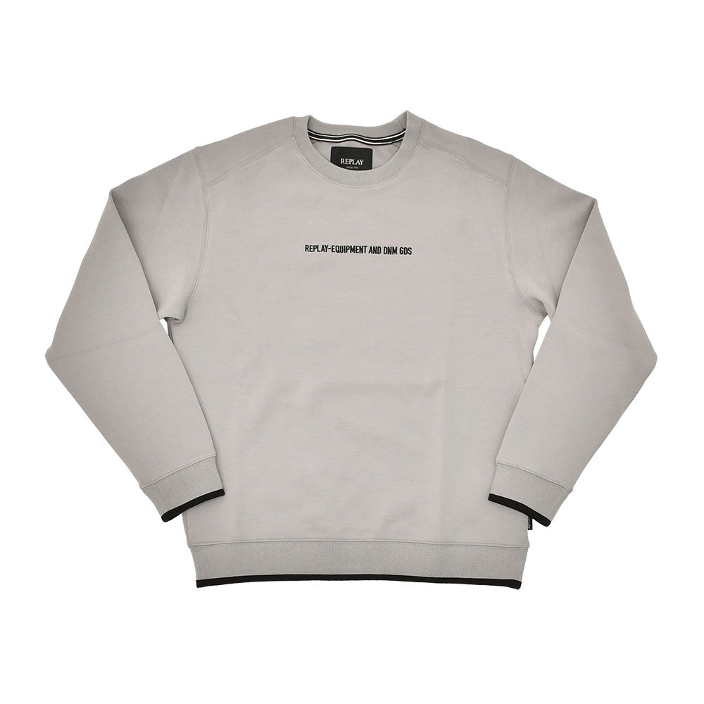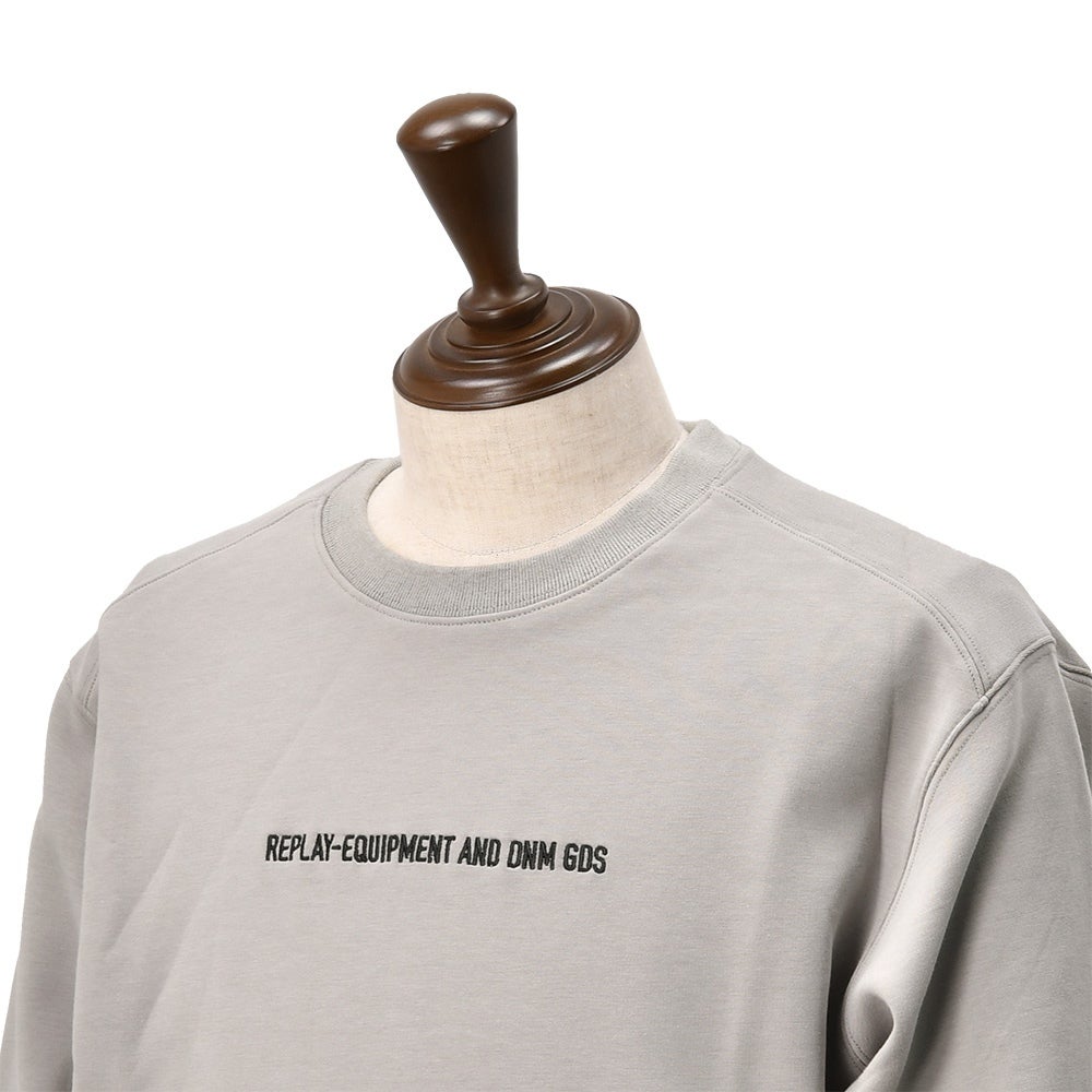 リプレイ REPLAY 長袖トレーナー メンズ スウェットシャツ コットンポリ 3者混生地 グレー クルーネック レタリングロゴ刺繍 ストレッチ リブ配色デザイン 国内正規品 でらでら 公式ブランド