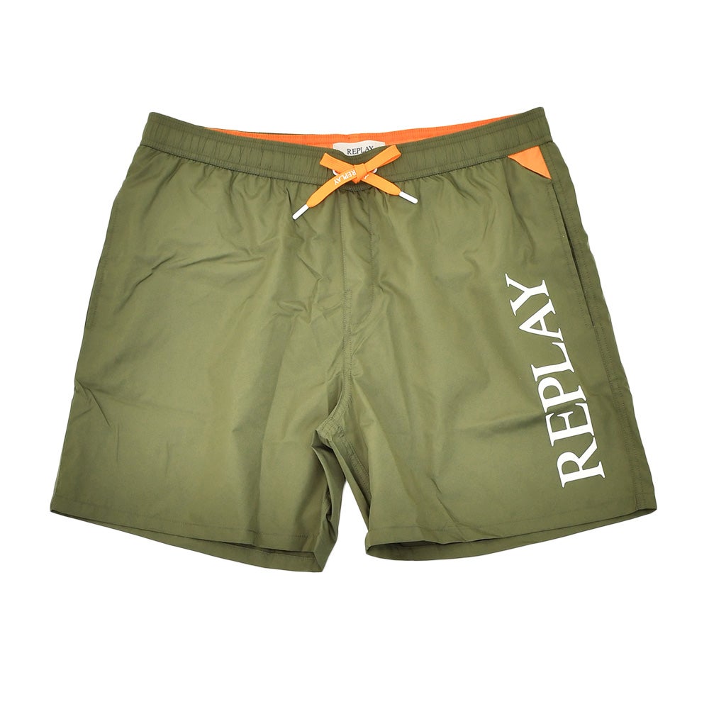 【返品交換不可】リプレイ REPLAY スイムパンツ メンズ 水着 ハーフパンツ オリーブグリーン ポリエステル ショート丈 LM1145 国内正規品 でらでら公式 ブランド