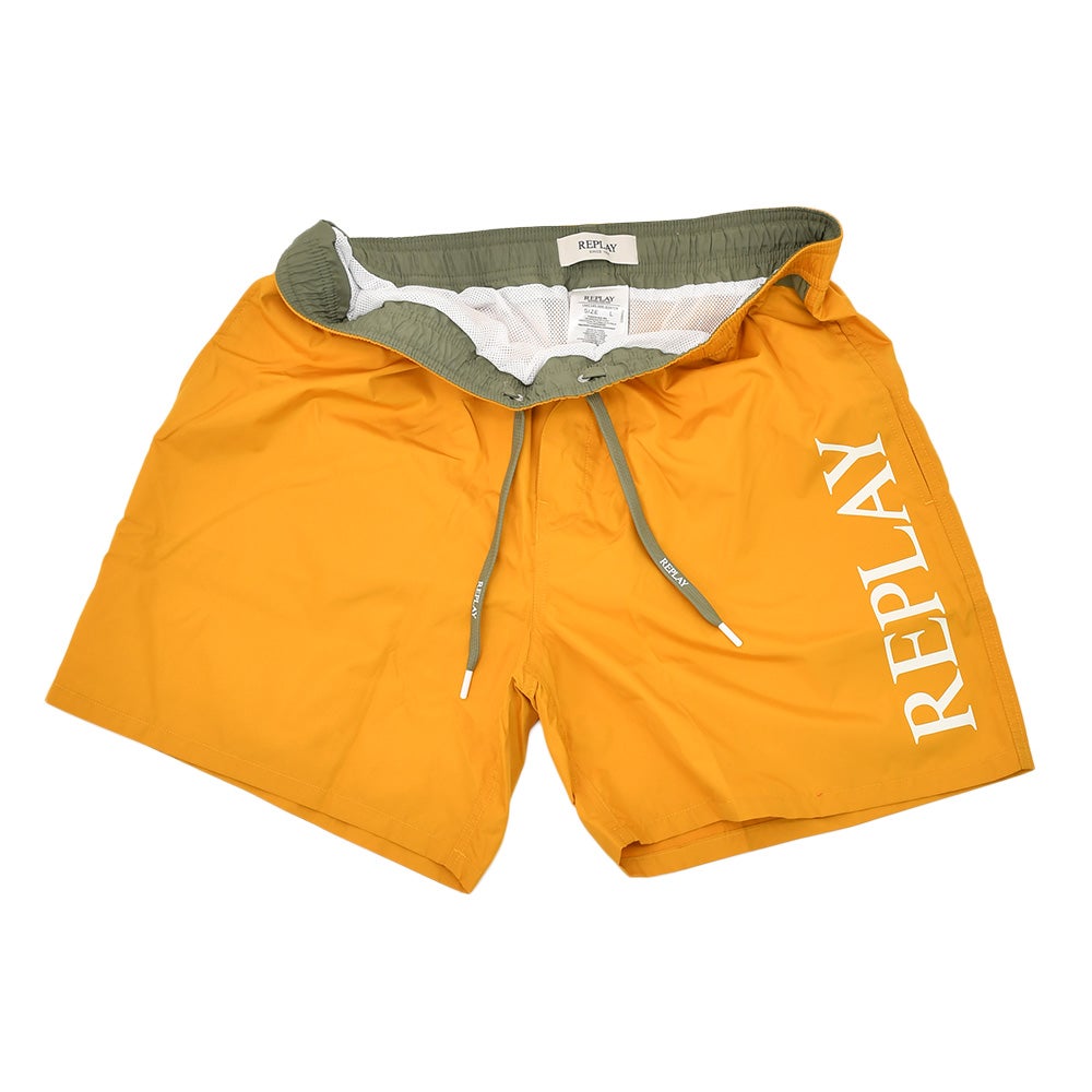 【返品交換不可】リプレイ REPLAY スイムパンツ メンズ 水着 ハーフパンツ オレンジ ポリエステル ショート丈 LM1145 国内正規品 でらでら公式 ブランド
