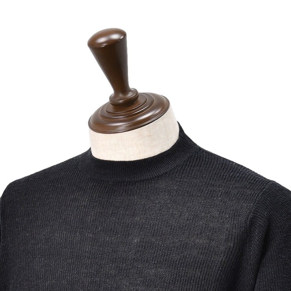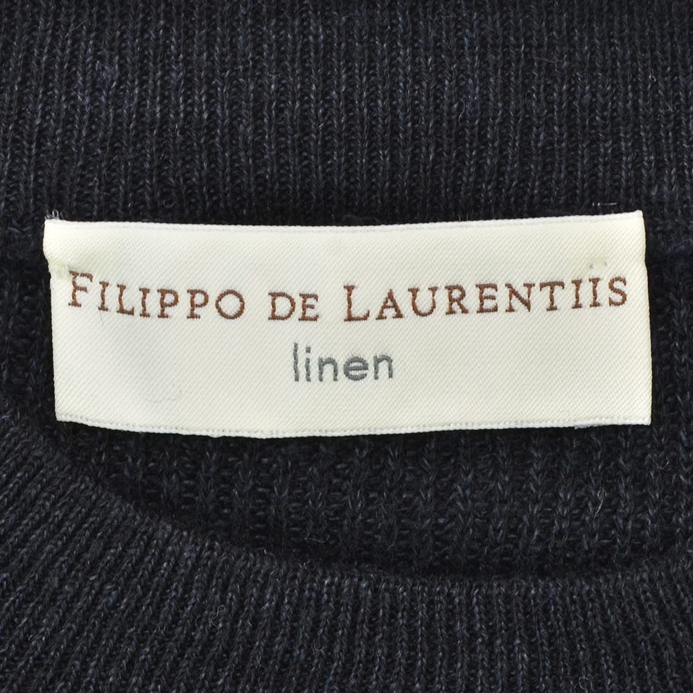 フィリッポ デ ローレンティス FILIPPO DE LAURENTIIS 長袖サマーニット メンズ クルーネックニット リネンコットン 14ゲージ ブラック 黒 リブ編み コンパクトフィット 国内正規品 でらでら 公式ブランド