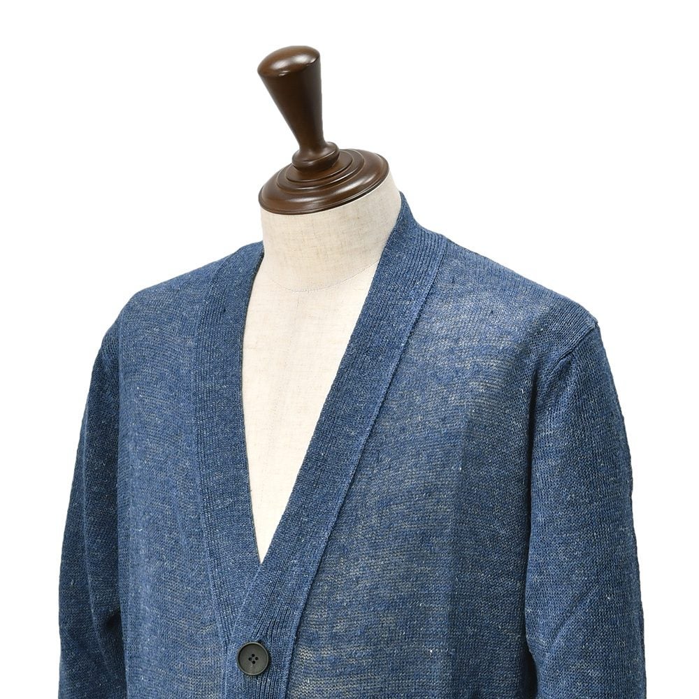 フィリッポ デ ローレンティス FILIPPO DE LAURENTIIS ニットカーディガン メンズ リネンシルク 7ゲージ ブルー 青 Vネック仕様 スリムフィット 軽量&薄手 国内正規品 でらでら 公式ブランド