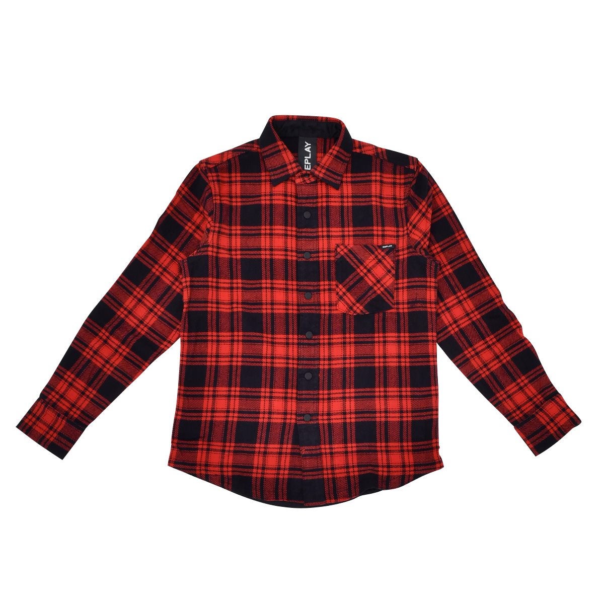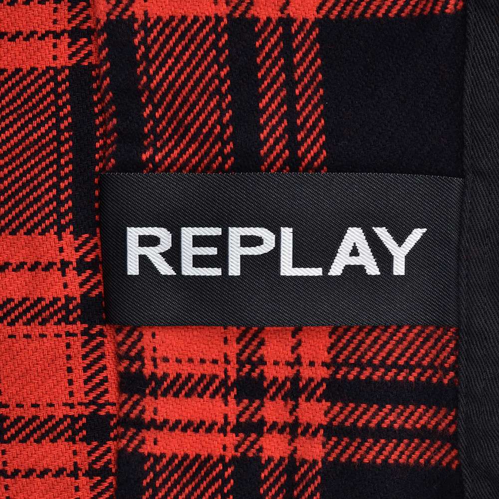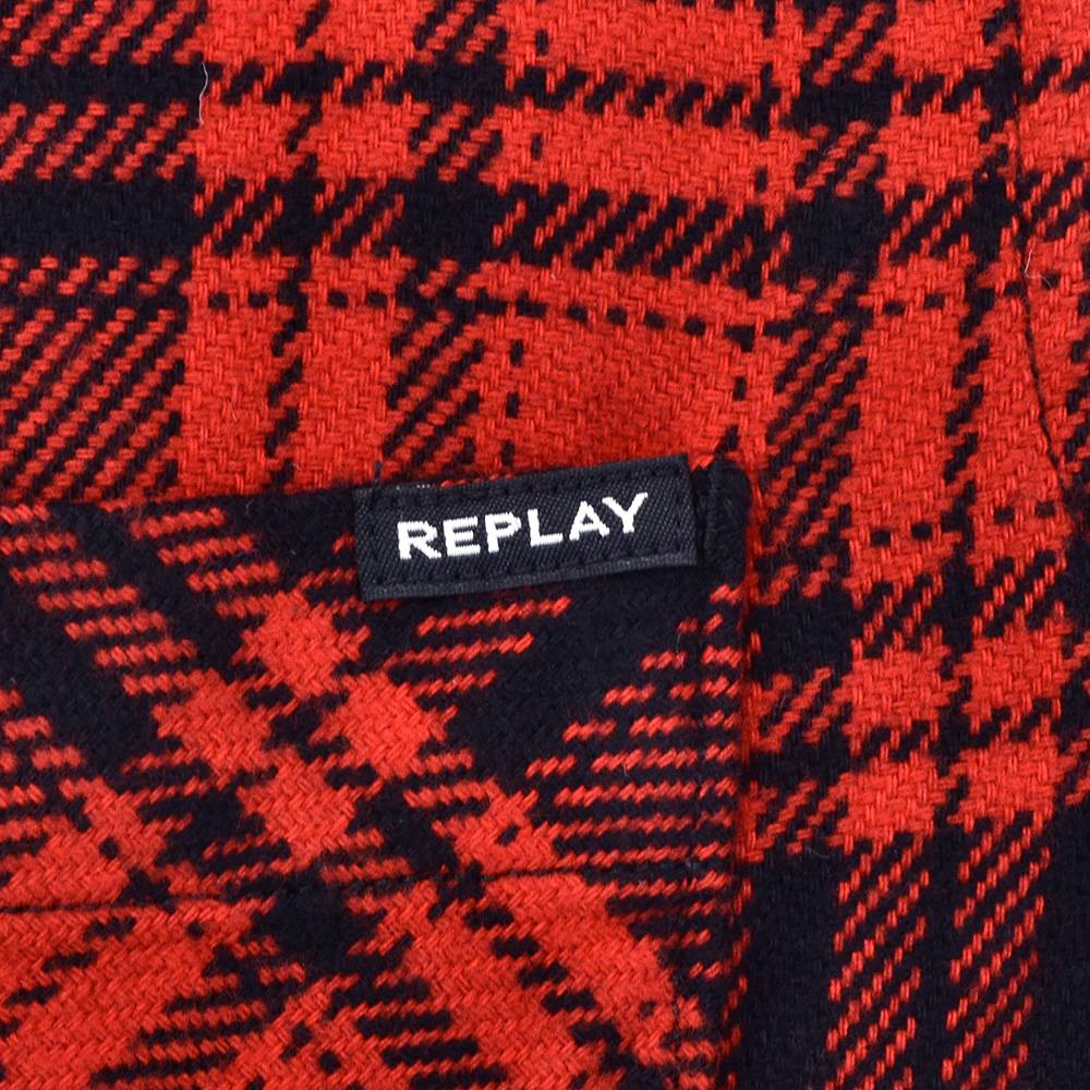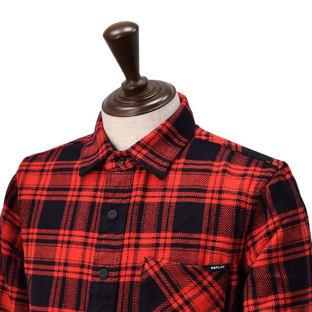 リプレイ REPLAY チェック柄シャツ メンズ コットンフランネル 胸ポケットデザイン レッド×ブラック パッチ釦フロント レギュラーフィット 国内正規品 でらでら 公式ブランド