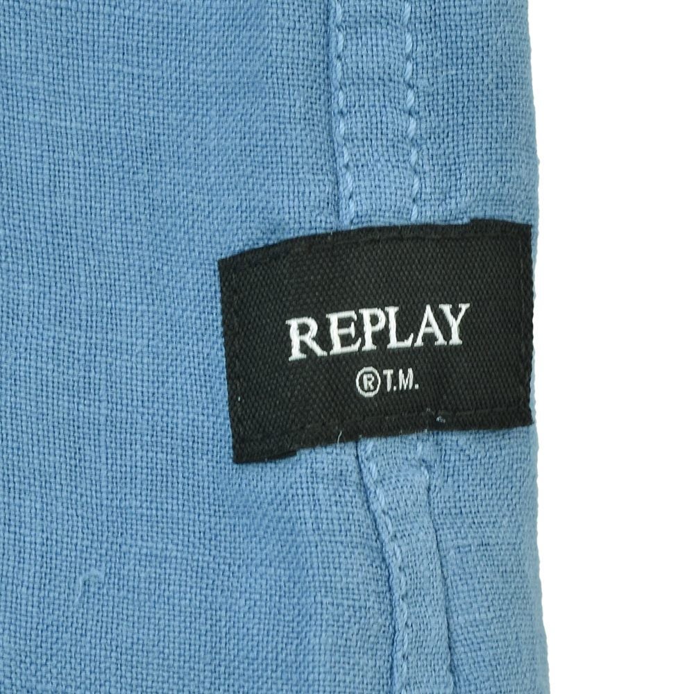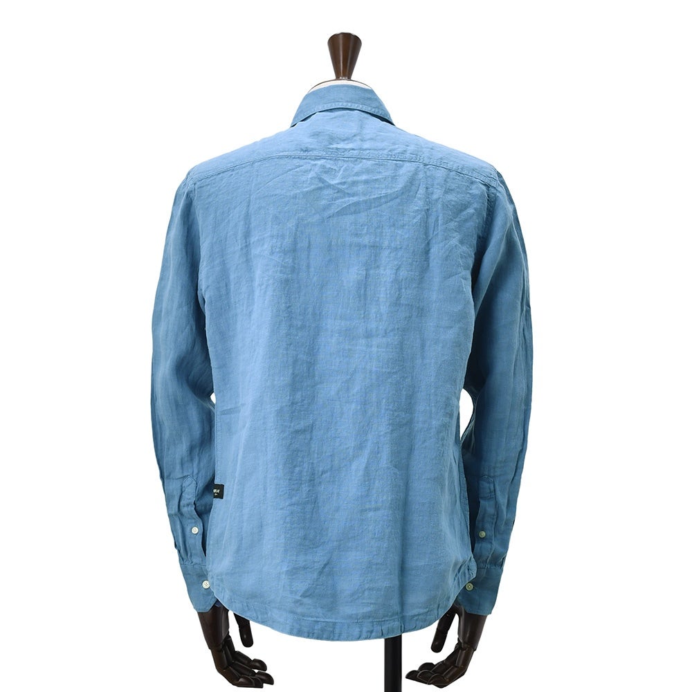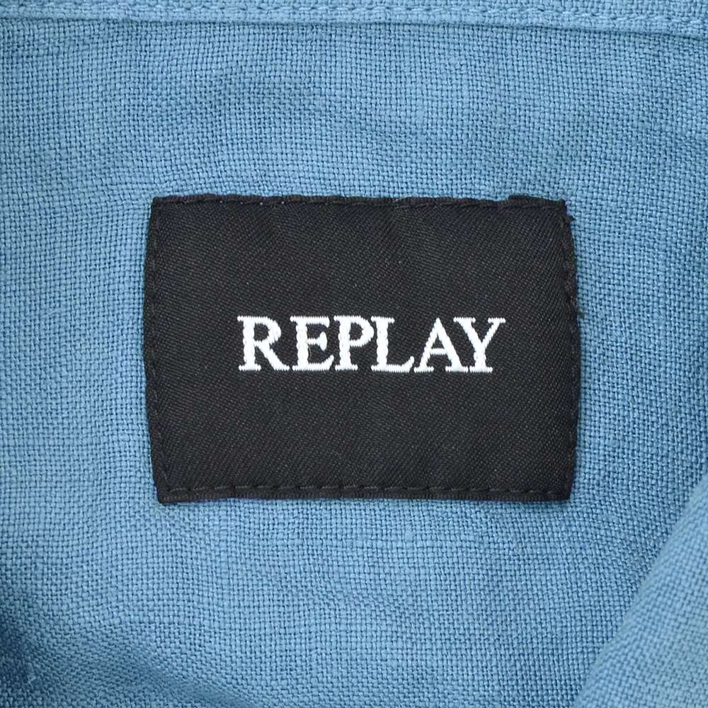 リプレイ REPLAY 長袖カジュアルシャツ メンズ ロングスリーブ リネン生地 ガーメントダイ ブルー フラップ付き胸ポケット ブランドタグ レギュラーフィット 国内正規品 でらでら 公式ブランド