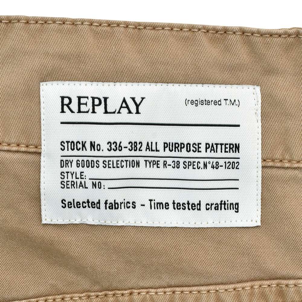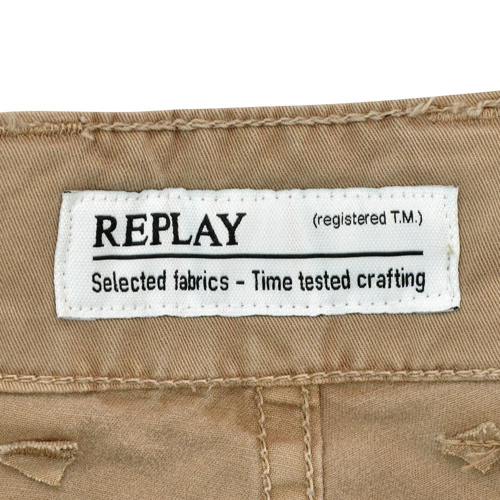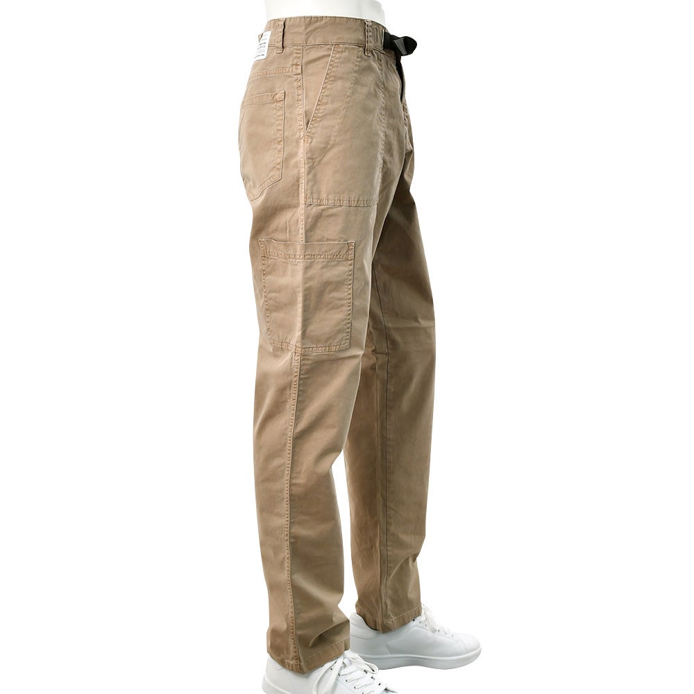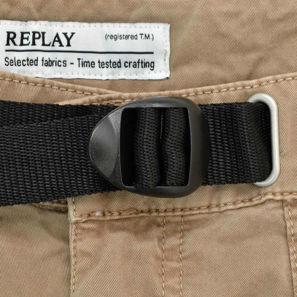 リプレイ REPLAY コットンパンツ メンズ ストレッチツイル生地 ウエスト調節可能バックル ブラウンベージュ ガーメントダイ カーペンターパンツ レギュラーシルエット カーゴ型ポケット 国内正規品 でらでら 公式ブランド