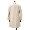 そんなラペルと、コートの着丈に対してバランス良く並んだ3つボタンと、段返りシングル仕立てのフロントは、プレーンさを引き立てた穏やかな表情を描き上げていて、全体的にぐっとモダンなフェイスに仕上がりました。