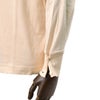 一見シンプルでオーソドックスなモックネックTシャツに見えますが、特徴となるのは、アイコニックな袖口のボタン。リブ仕様にしていますが、シャツカフのようなデザインを取り入れております。ボタン仕様になっておりますので、カットソーをシャツのように捲ったりと、着用される方のオリジナルの着こなしが楽しめる1着に仕上がっております。