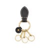 フェリージのアイコンでもあるタブクリップ型のレザーパーツには、紋章が丁寧に刻印され、さりげなくブランドを主張します。太く艶を抑えたゴールドリングが、重厚感とクラシックな雰囲気を演出。3つのクリップには小リングが組み合わされ、鍵を種類ごとに分けて持てる便利な設計です。コンパクトながらも適度な重量感があり、手に持った時の心地よさも魅力です。