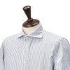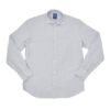 ブランドを象徴する代表的な襟型、“SIMONE(シモーネ)”は、ノータイでもタイドアップでも美しく決まり、安定感のある美しい首元を演出。フレンチフロントの前立てが全体をすっきりと整え、厚みのある白蝶貝ボタンは、職人の手仕事による“ザンパテ・グリアート(鳥足付け)”で丁寧に縫い留められています。