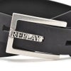 シルバーバックルは高級感を引き立てる上品さが魅力。リプレイロゴを型取ったベルトピンがポイントで、ベルト穴に通すとフラットにロゴが現れるデザインが、シンプルな中にオリジナリティーを添えています。