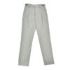 ウエストにはバックシャーリングを施し、ベルトレスでも自然に収まる美しいフィット感を実現。フロントは二段階で留められるパンツェリーナ仕様を採用し、安定感のある構造を備えています。さらに両サイドに配されたバックルで微調整が可能となり、細やかなサイズ対応力を発揮する工夫ポイントです。