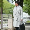 付属のウエストベルトを結べば、しなやかなドレープが生まれ、動きに合わせて立体的な陰影を演出。フロントを閉じれば凛としたラインが際立ち、フォーマルからカジュアルまで多彩なシーンに寄り添います。