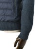 巧みな技術とアイディアが光る、異素材コンビネーションデザインは、スポーティさの中にもノーブルな佇まいを演出。背面で温められた空気を極上ダウンでキープする構造が、ニットウェアのリラックス感とアウターとしての機能性を両立しています。