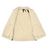 襟元にはフリースボアを配し、ナチュラルさと柔らかさで、視線を惹きつけるアクセントに。裏地にも同素材を使用することで、着心地の良さと極上の保温性を高めています。また、表地からのぞくボアが、さりげない遊び心を添え、独特の表情を作り出しています。