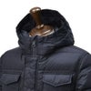 M-65のテイストを取り入れたフード前立て式のダウンブルゾン。