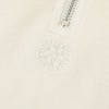 胸元にはブランドのアイコン刺繍をさりげなく配置し、控えめながら存在感を放つアクセントに。襟は立てても折り返しても着用でき、ジップの空き具合でちょっとした表情の変化をつけて、スタイリングの幅を広げてくれる万能なネックデザインです。