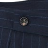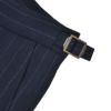 ベルトループの無いベルトレス仕様であり、ウエストのフィット感を高める3点留めフロントや屈んだ時の窮屈感をサポートしてくれるV字スリット、長めの持ち出しや山なりのウエスマン、内側のパイピング補強といったサルトリアの仕様が、ウールファブリックに合わさり、ドレスライクな見え感を作り出しております。