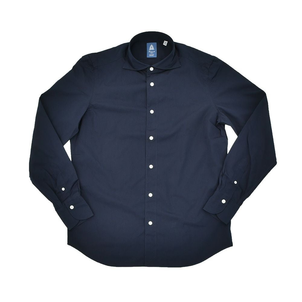 フィナモレ Finamore 長袖シャツ メンズ SIMONE シモーネ コットンポプリン生地 ネイビー 紺 100周年タグ ブランドロゴ入り貝釦 製品洗い カッタウェイ襟 TONDO型 国内正規品 オクテット名古屋