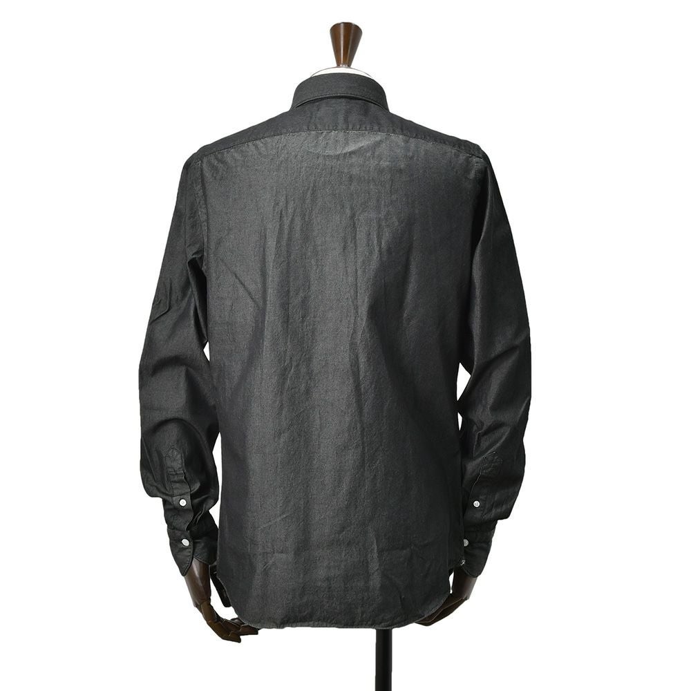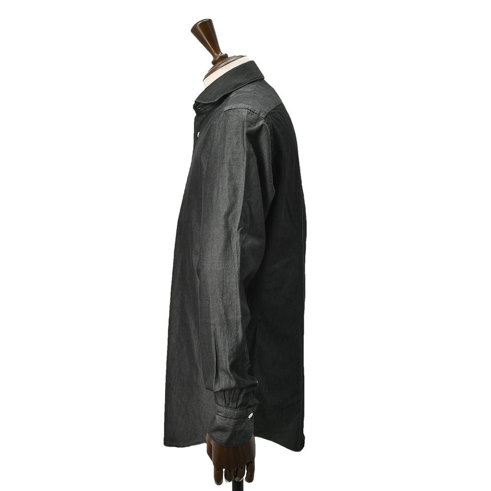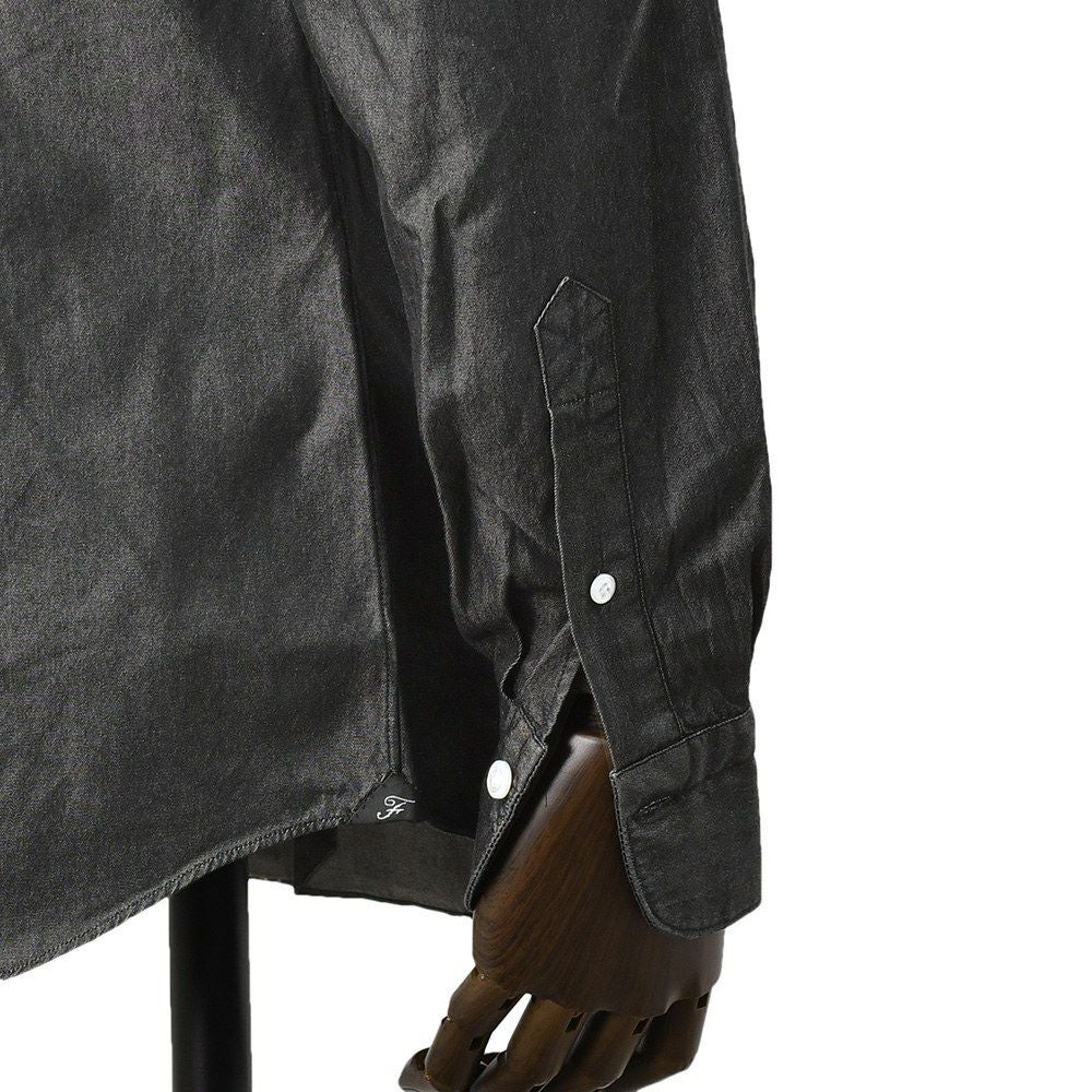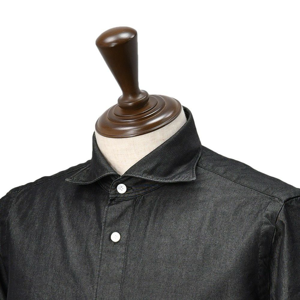 フィナモレ Finamore 長袖シャツ メンズ SIMONE シモーネ コットンシャンブレー生地 ブラックウォッシュ 黒 100周年タグ ブランドロゴ入り貝釦 カッタウェイ襟 TONDO型 国内正規品 オクテット名古屋