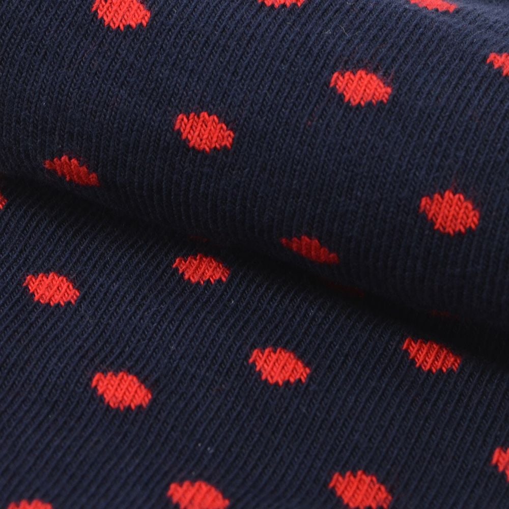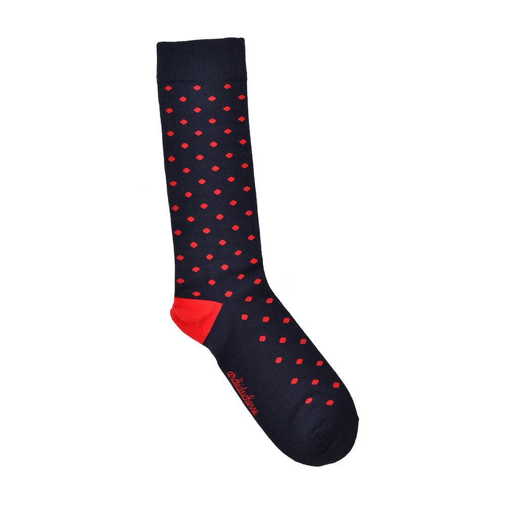 アシッドゥシャス Archiduchesse ロングソックス メンズ DE VILLE 水玉柄靴下 コットンナイロン ネイビー×レッド ストレッチ ブランドロゴ プレゼント 贈り物 ギフト フランス製 国内正規品 オクテット名古屋