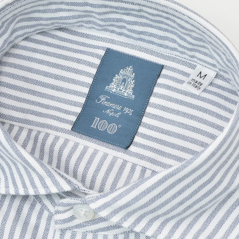 フィナモレ Finamore 長袖カジュアルシャツ メンズ SIMONE シモーネ コットン生地 ホワイト×ネイビー 100周年モデル ストライプ柄 国内正規品 オクテット名古屋