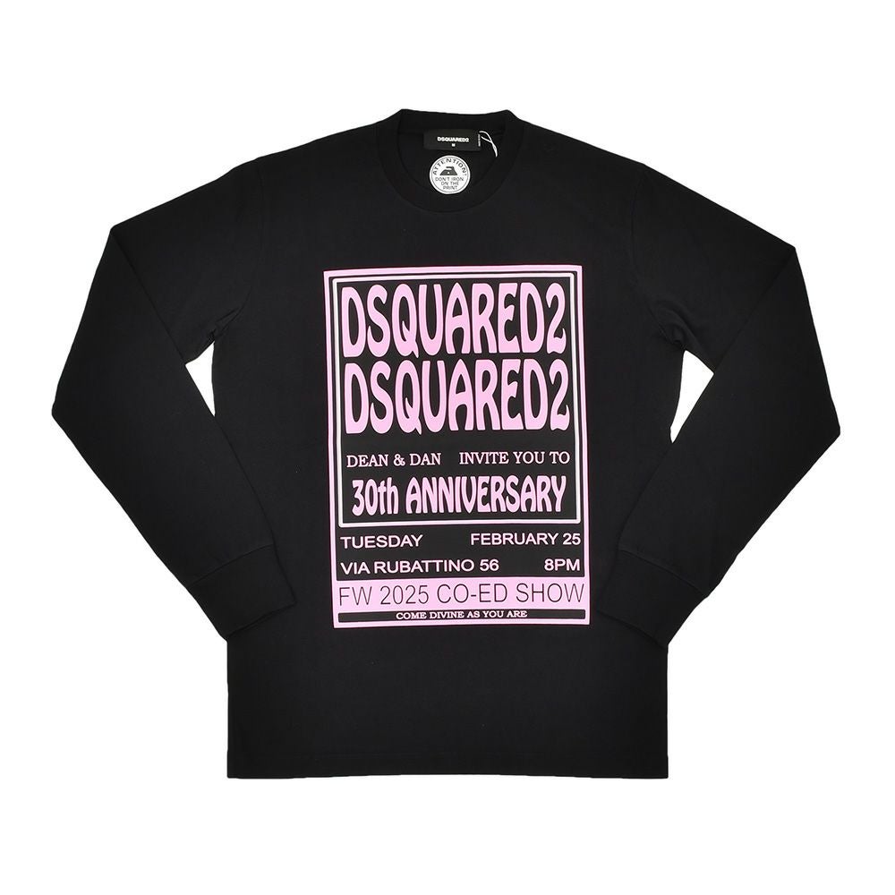 ディースクエアード DSQUARED2 長袖Tシャツ メンズ クルーネックカットソー コットンジャージー ブラック 黒 30th Anniversary記念モデル プリントデザイン レギュラーフィット 国内正規品 オクテット名古屋