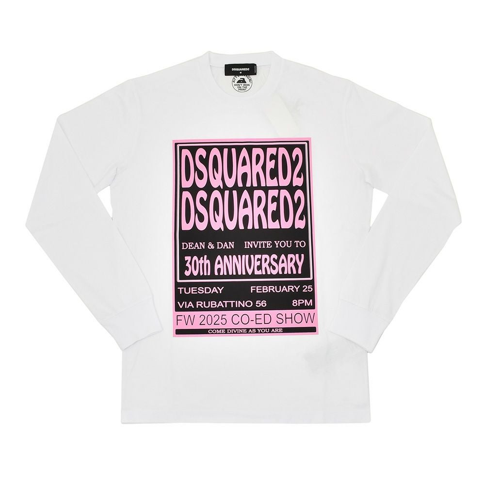 ディースクエアード DSQUARED2 長袖Tシャツ メンズ クルーネックカットソー コットンジャージー ホワイト 白 30th Anniversary記念モデル プリントデザイン レギュラーフィット 国内正規品 オクテット名古屋