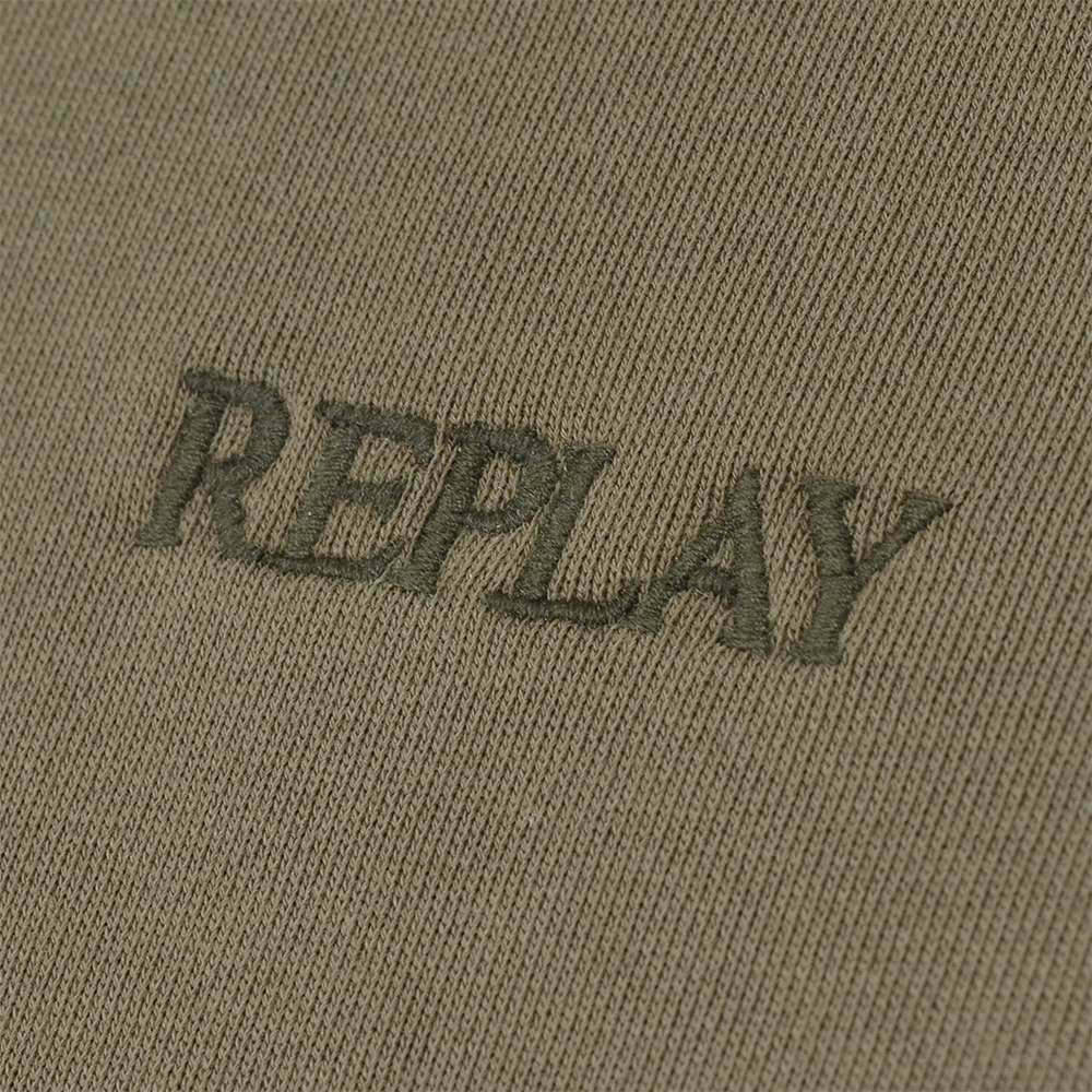 リプレイ REPLAY プルオーバーパーカー メンズ フーディースウェットシャツ コットンテリー素材 オリーブ ブランドロゴ刺繍 裏パイル ドローコード付き 国内正規品 でらでら 公式ブランド