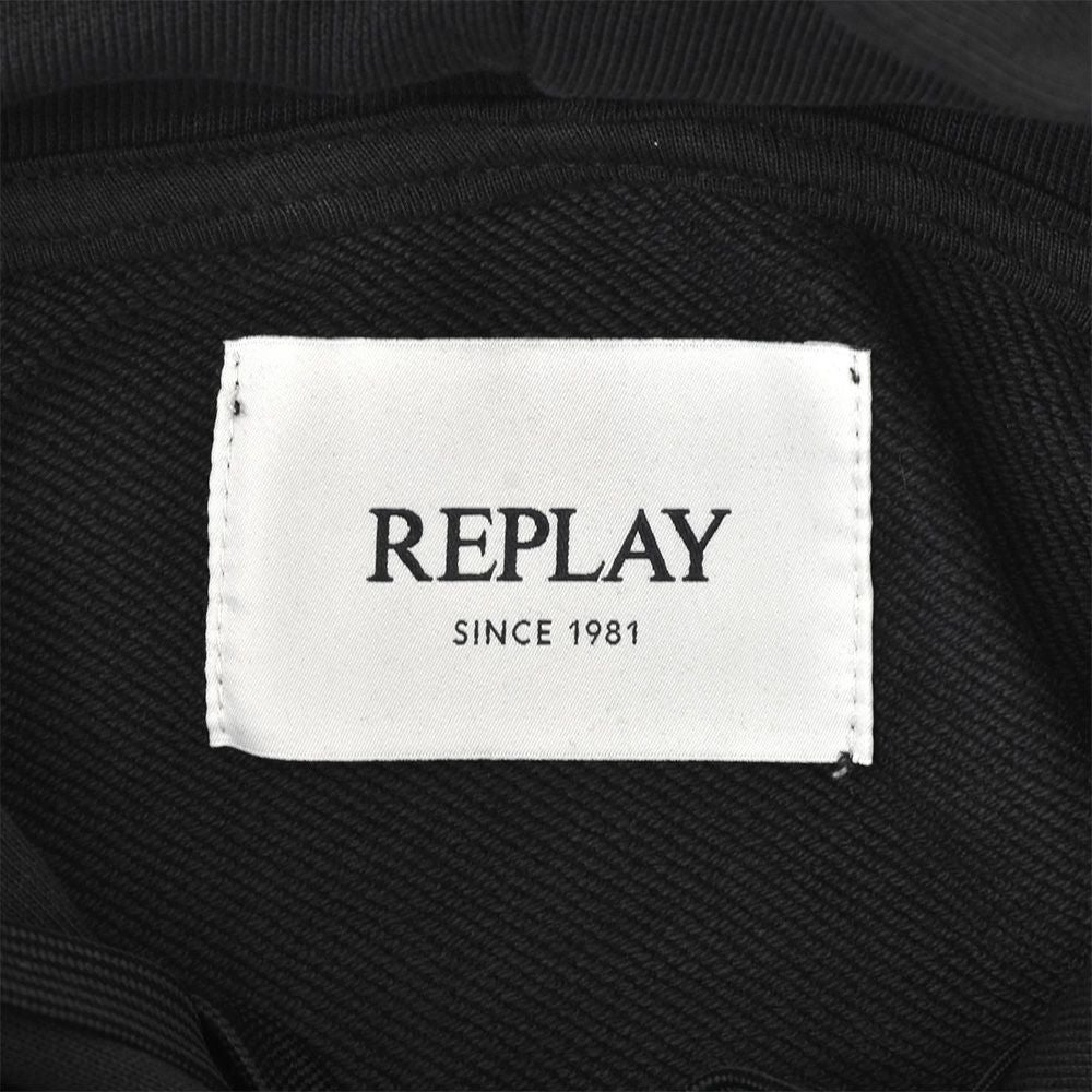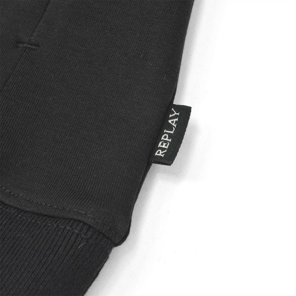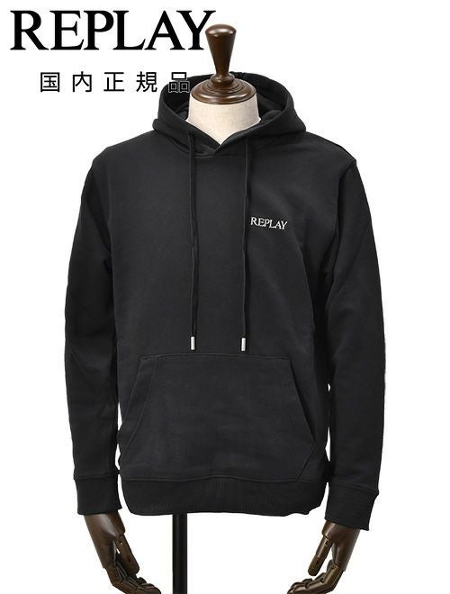 リプレイ REPLAY プルオーバーパーカー メンズ フーディースウェットシャツ コットンテリー素材 ブラック 黒 ブランドロゴ刺繍 裏パイル ドローコード付き 国内正規品 でらでら 公式ブランド