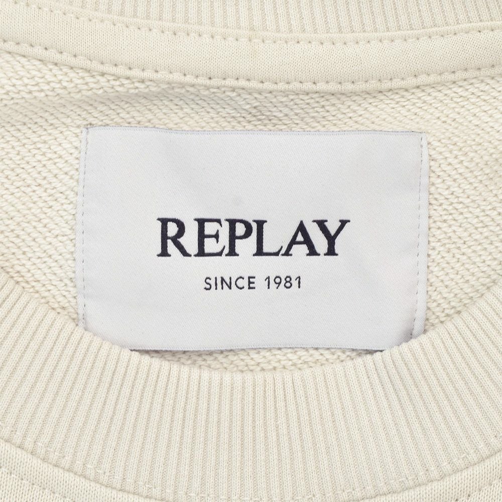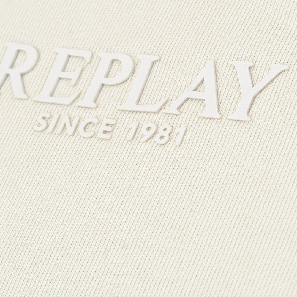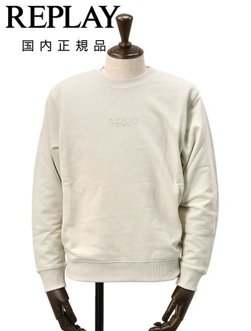 リプレイ REPLAY 長袖トレーナー メンズ スウェットシャツ フレンチテリー オフホワイト クルーネック レタリングロゴ 裏パイル 背面ロゴラベル 国内正規品 でらでら 公式ブランド
