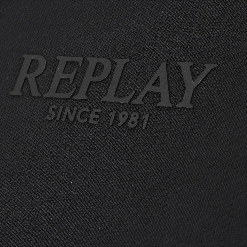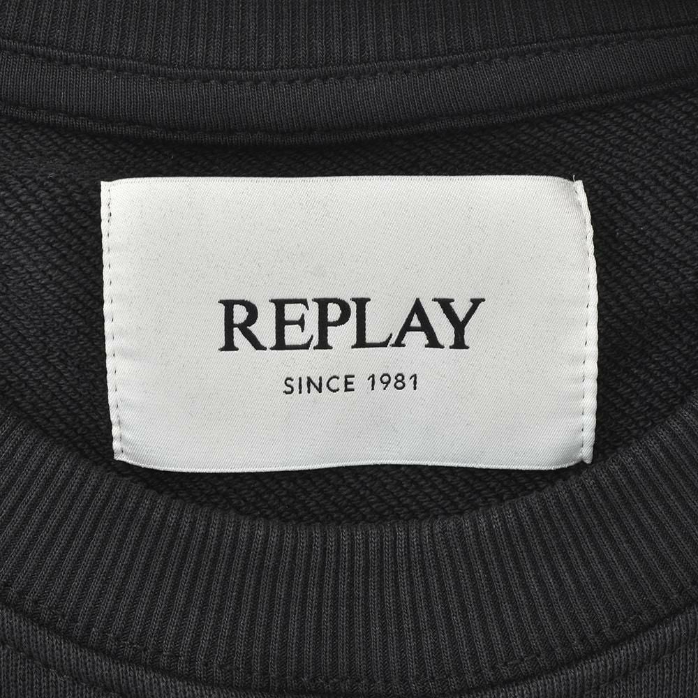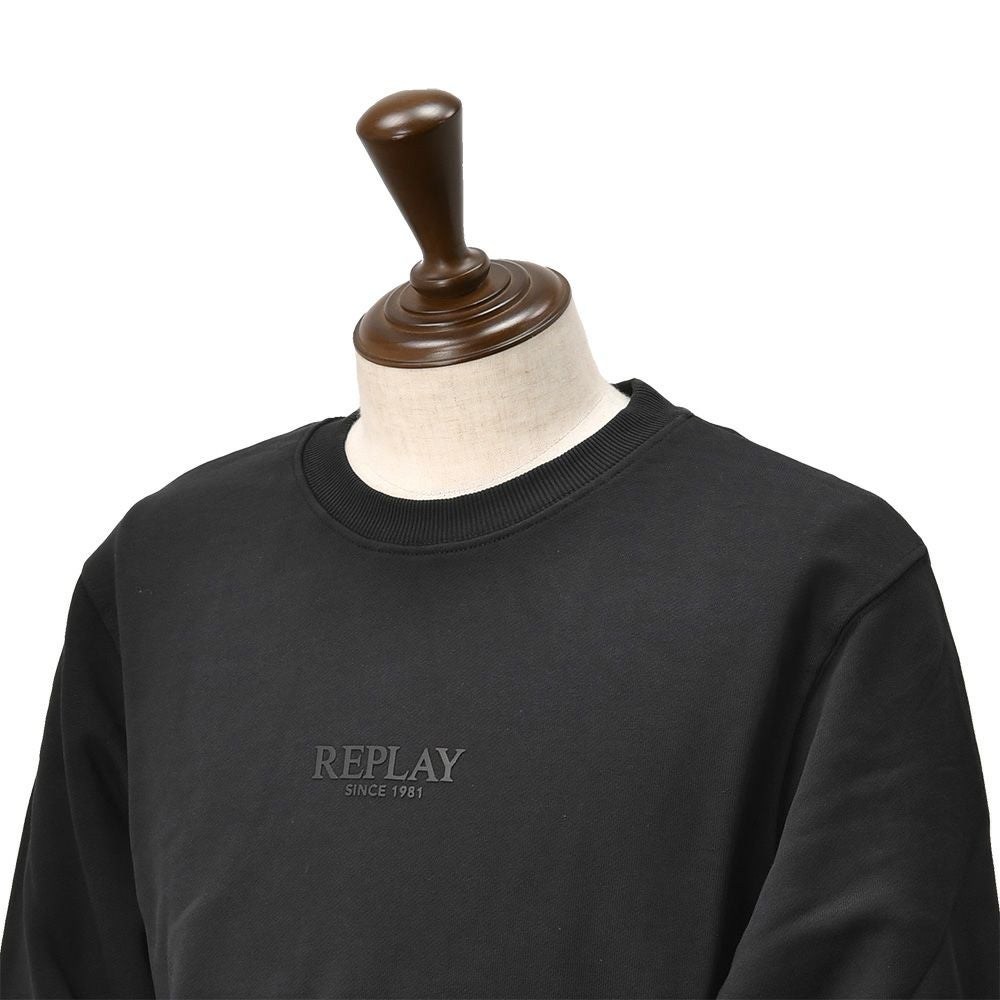 リプレイ REPLAY 長袖トレーナー メンズ スウェットシャツ フレンチテリー ブラック 黒 クルーネック レタリングロゴ 裏パイル 背面ロゴラベル 国内正規品 でらでら 公式ブランド