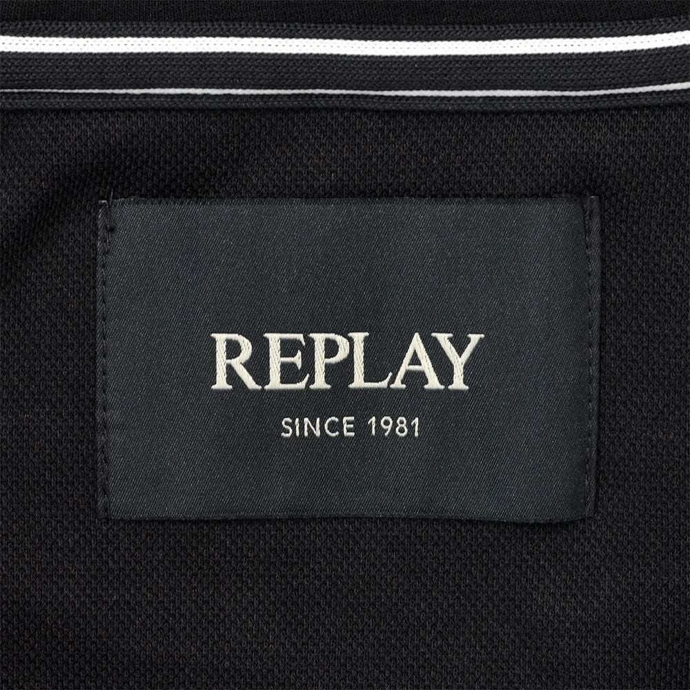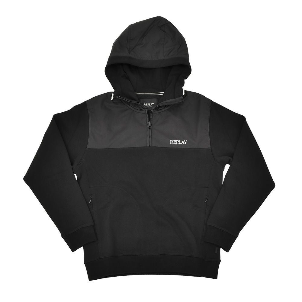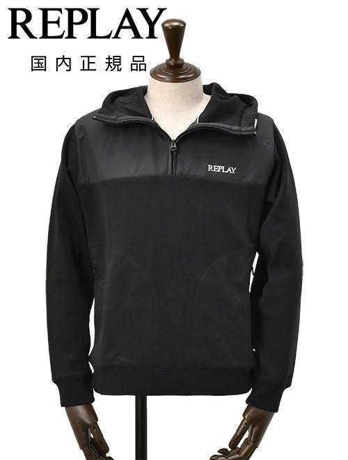リプレイ REPLAY ハーフジップパーカー メンズ プルオーバー 3者混生地 ブラック 黒 スタンドネック仕様 ブランドロゴ刺繍 異素材切り替えデザイン サイドポケット 国内正規品 でらでら 公式ブランド