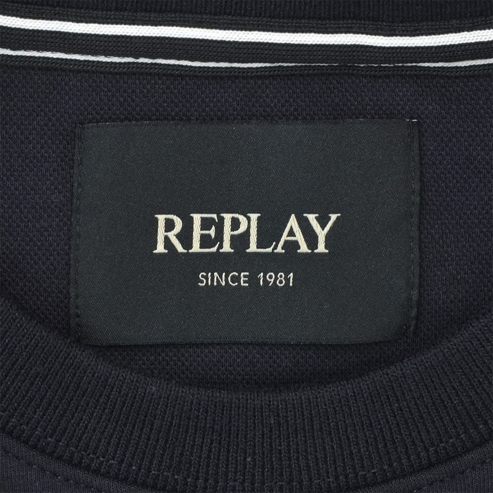 リプレイ REPLAY 長袖トレーナー メンズ スウェットシャツ コットンポリ 3者混生地 ネイビー 紺 クルーネック レタリングロゴ刺繍 ストレッチ リブ配色デザイン 国内正規品 でらでら 公式ブランド