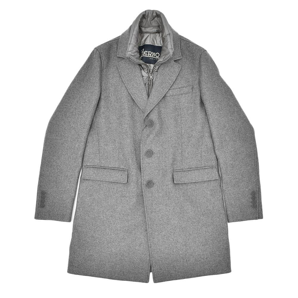 ヘルノ HERNO チェスターコート メンズ CA000202U メルトンウール グレーメランジ シングルフロント 取り外し可能中綿前立て ロング丈 国内正規品 でらでら 公式ブランド