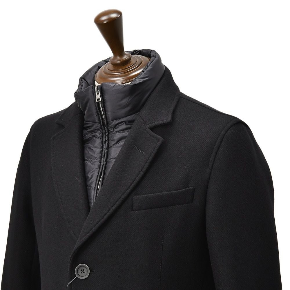 ヘルノ HERNO チェスターコート メンズ CA000202U メルトンウール ブラック 黒 シングルフロント 取り外し可能中綿前立て ロング丈 国内正規品 でらでら 公式ブランド