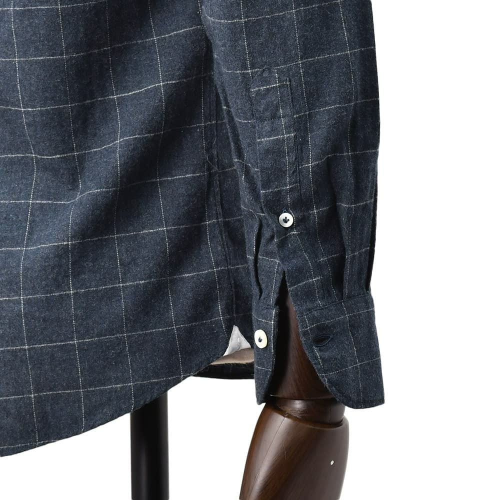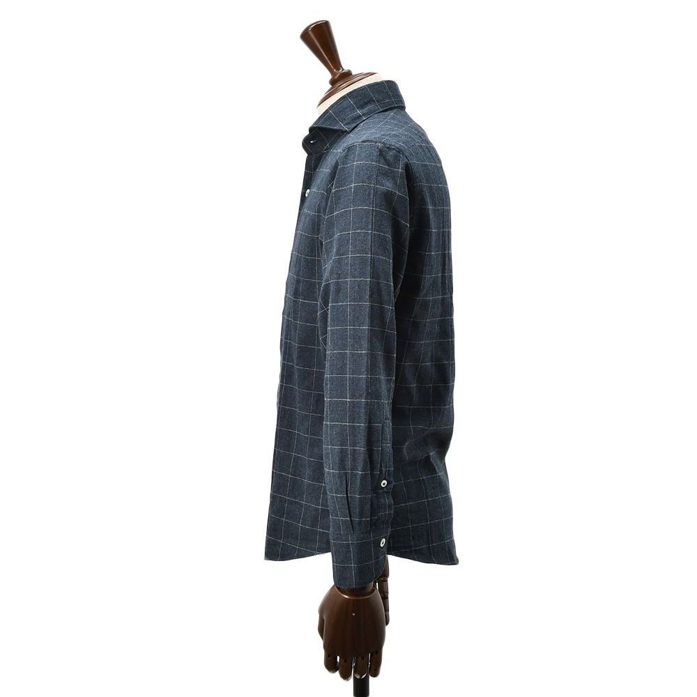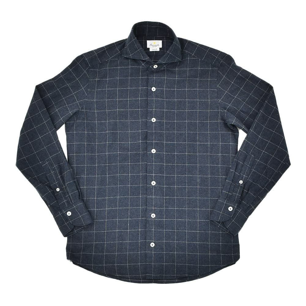 ジャンネット GIANNETTO 長袖シャツ メンズ フランネル コットン100% ネイビー×ホワイト 格子柄 ヴィンチフィット VINCI FIT ホリゾンタルカラー 国内正規品 でらでら 公式ブランド