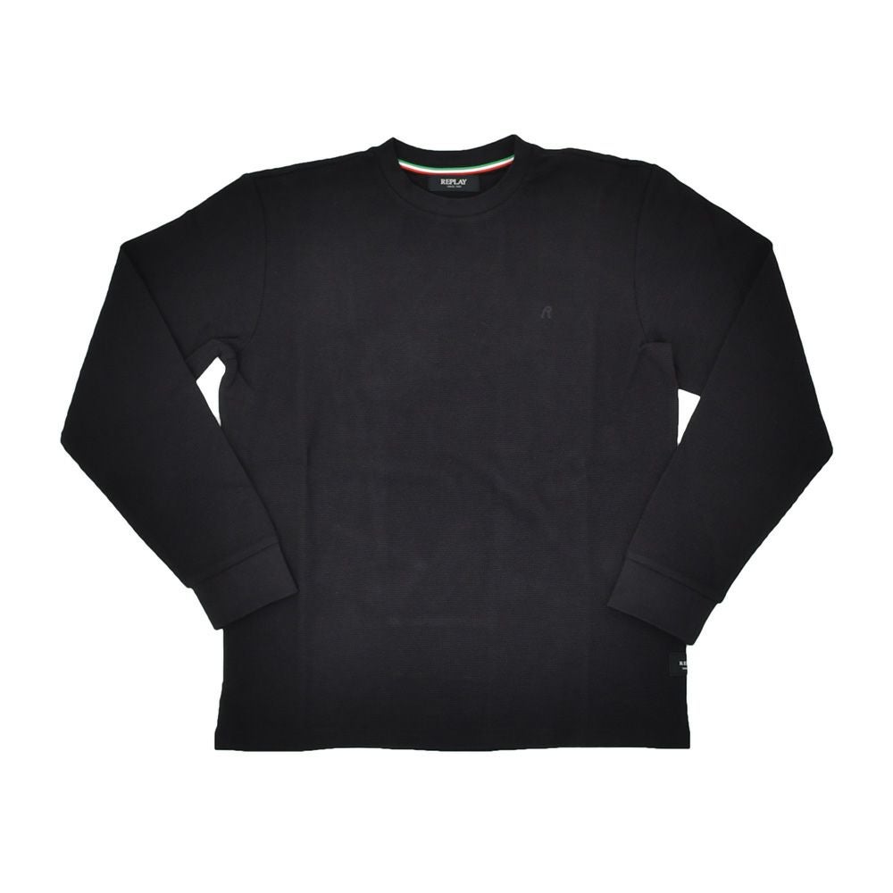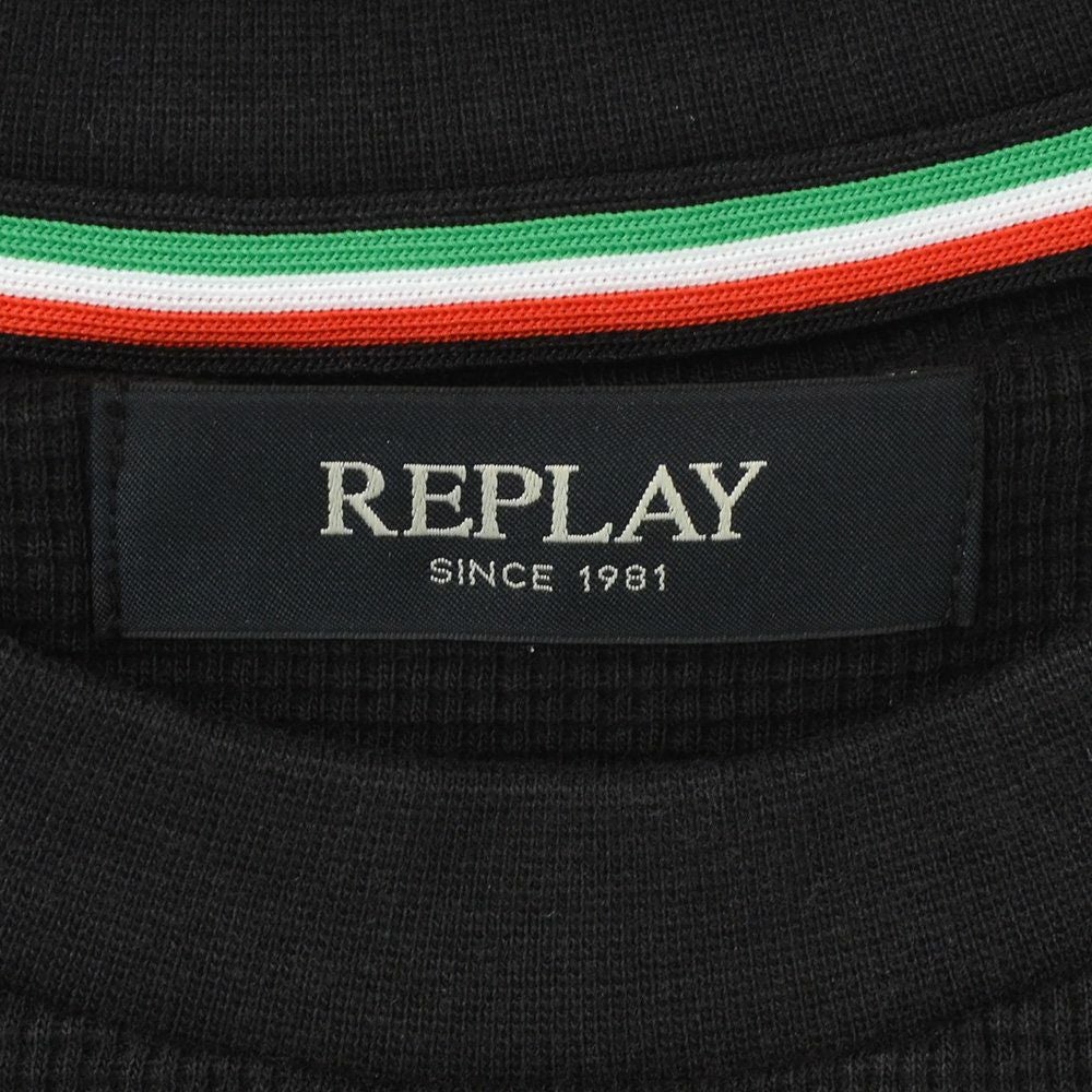 リプレイ REPLAY 長袖Tシャツ メンズ コットン100% ブラック 黒 クルーネック ワッフル素材 リブ仕様 国内正規品 オクテット名古屋 公式ブランド