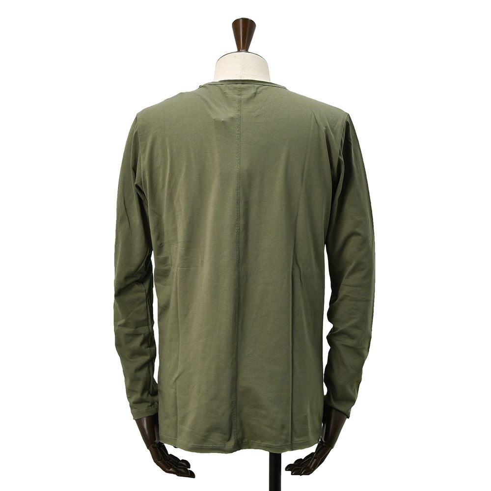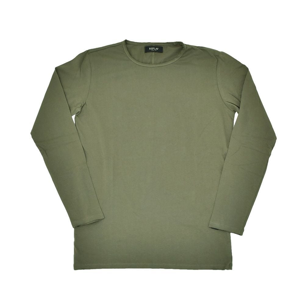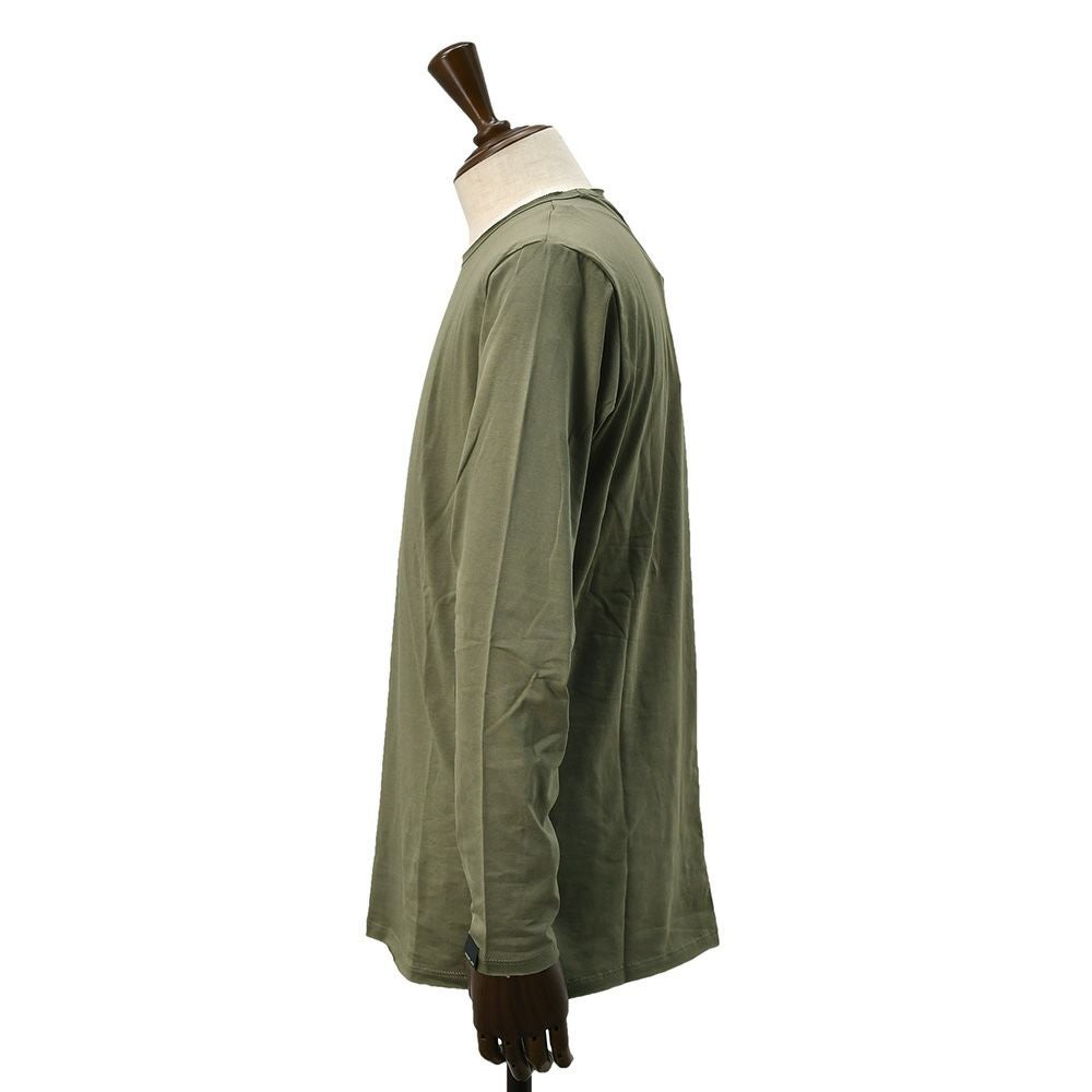 リプレイ REPLAY 長袖Tシャツ メンズ クルーネックカットソー ダメージ風デザイン コットン 綿100% オリーブ 左袖ブランド織りタグ 薄手仕様 レギュラーシルエット 国内正規品