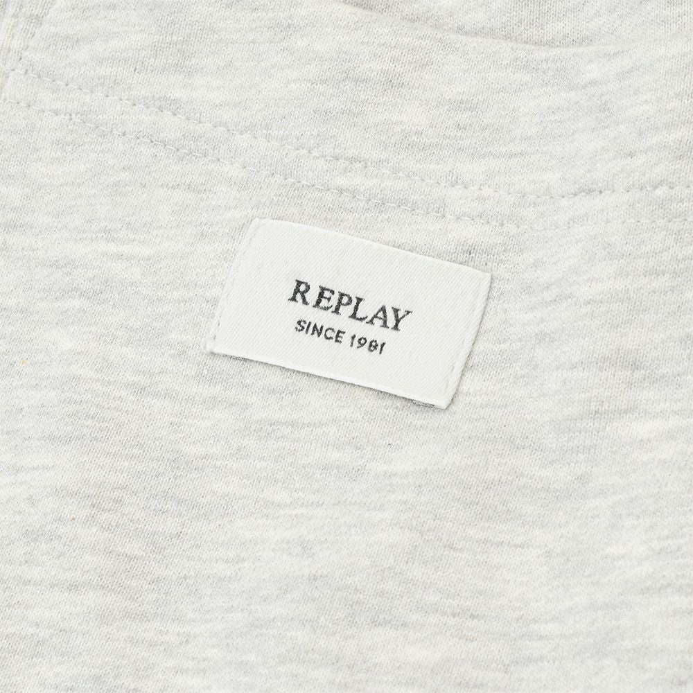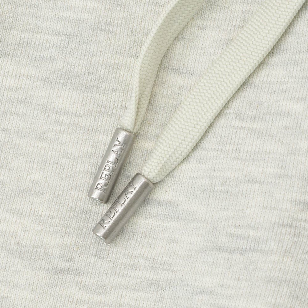 リプレイ REPLAY プルオーバーパーカー メンズ フーディースウェットシャツ コットンテリー素材 ライトグレー ブランドロゴ刺繍 裏パイル ドローコード付き 国内正規品 でらでら 公式ブランド