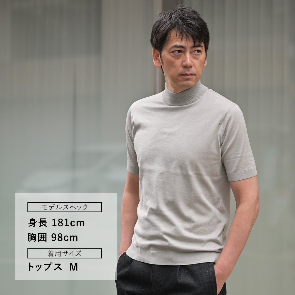 ジョンスメドレー JOHN SMEDLEY モックネックニット メンズ 半袖ニット ARBER シーアイランドコットン ライトグレー 30ゲージ MODERN FIT モダンフィット 国内正規品 オクテット名古屋
