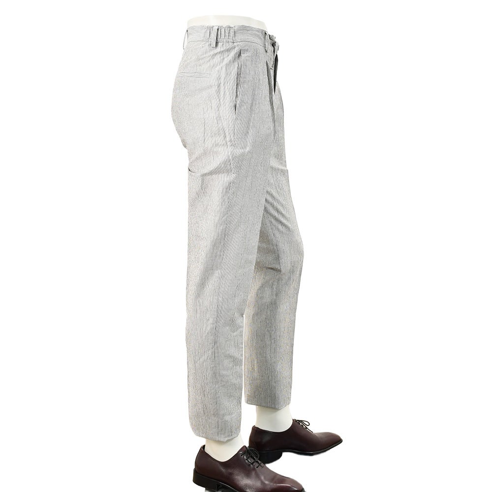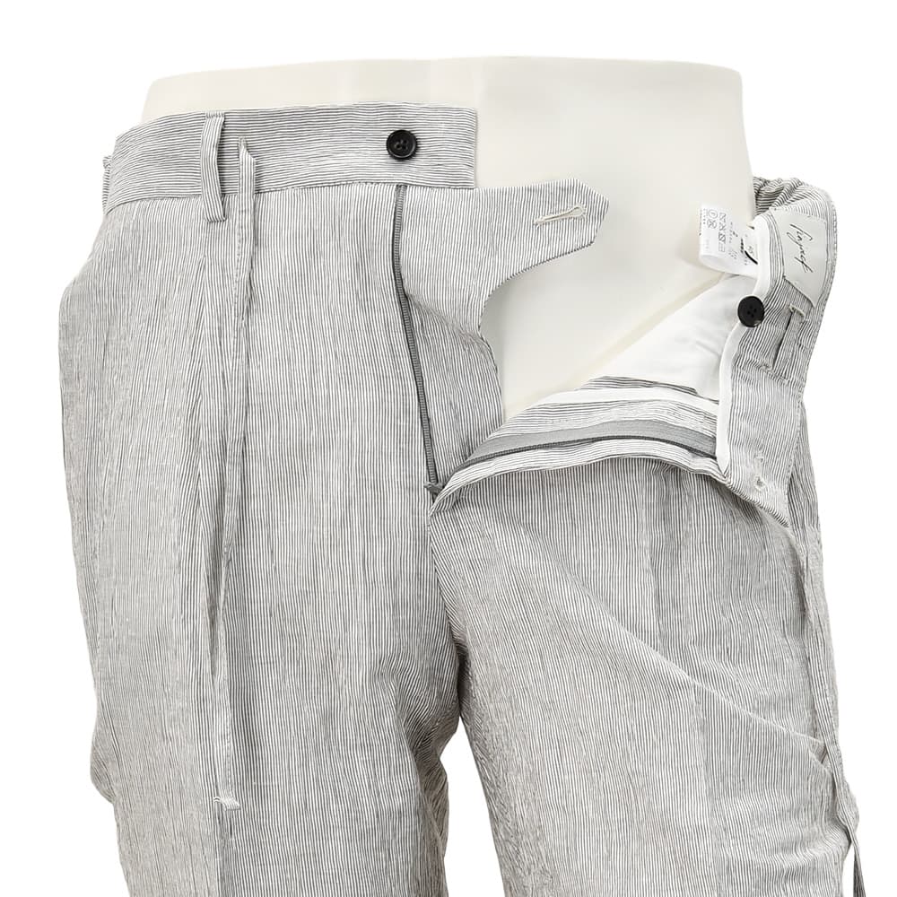 フィンジャック Finjack イージースラックス メンズ ストライプ柄テーパードパンツ ヌーヴォラライン 楊柳織り コットンリネンポリエステル ホワイト×グレー 超軽量 サイドシャーリング仕様 国内正規品 オクテット名古屋