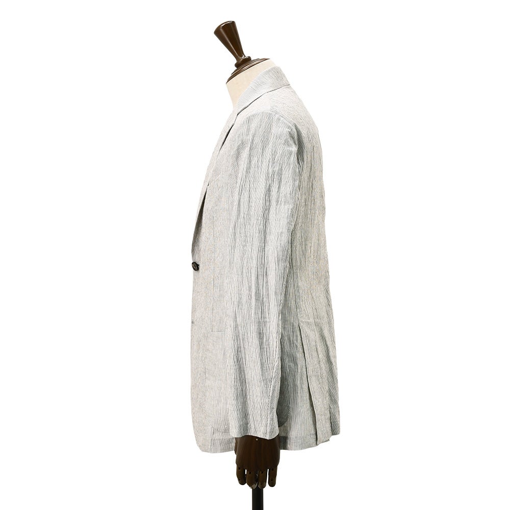 フィンジャック Finjack 超軽量ジャケット メンズ イージージャケット ヌーヴォラライン 楊柳織り コットンリネンポリエステル ストライプ柄 ホワイト×グレー シングル2つ釦 スリムシルエット 国内正規品 オクテット名古屋