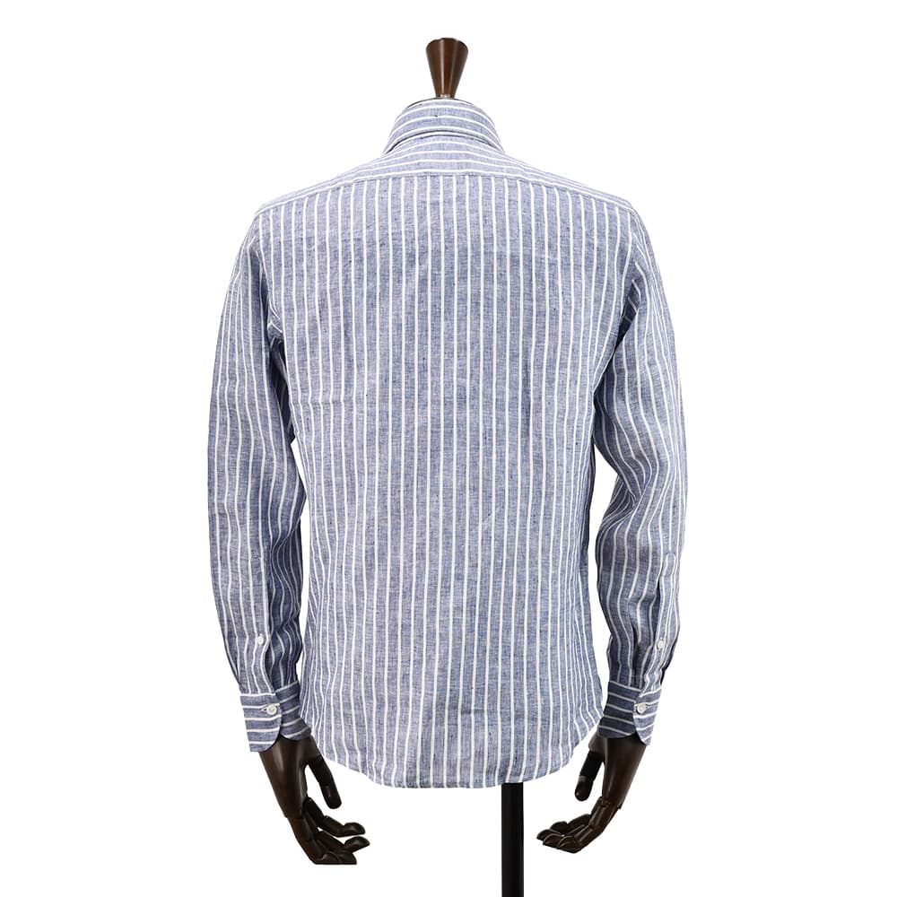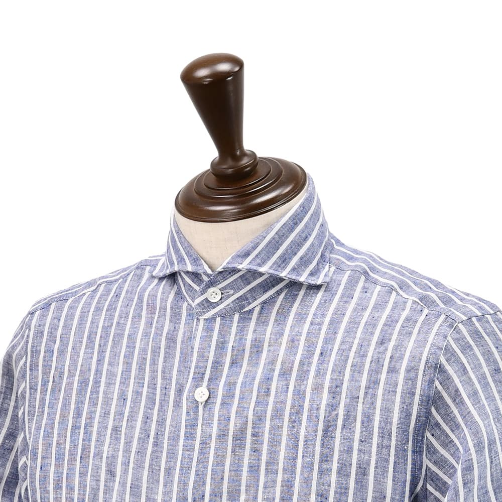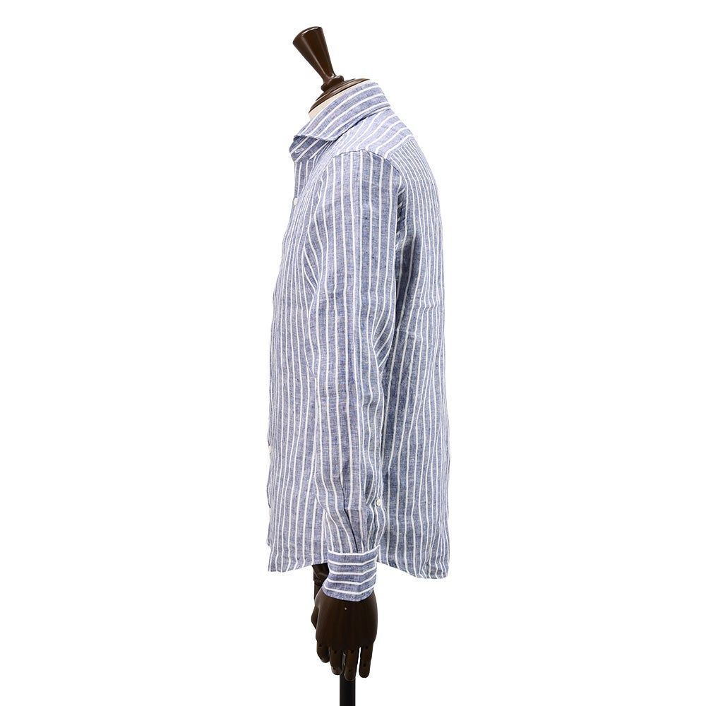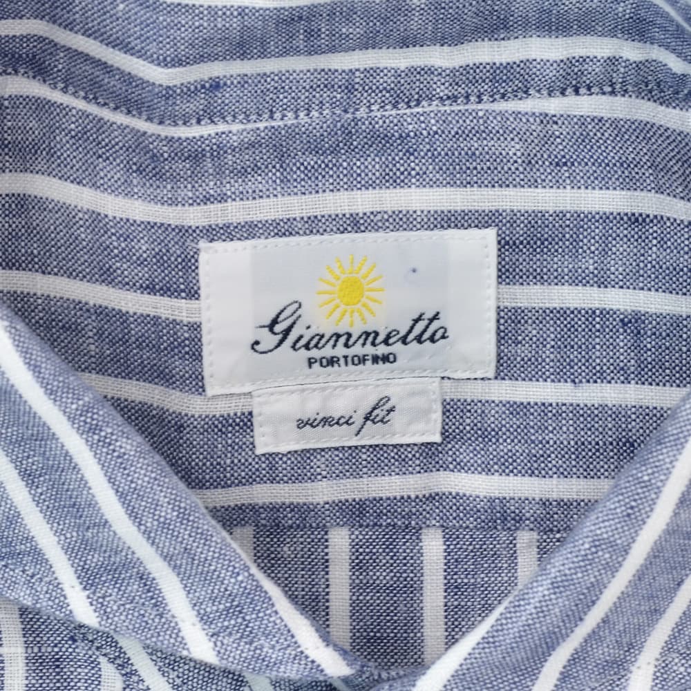 ジャンネット GIANNETTO 長袖カジュアルシャツ メンズ ストライプ柄シャツ リネン生地 ヴィンチフィット VINCI FIT ブルー×ホワイト ホリゾンタルカラー イタリア製 国内正規品 オクテット名古屋